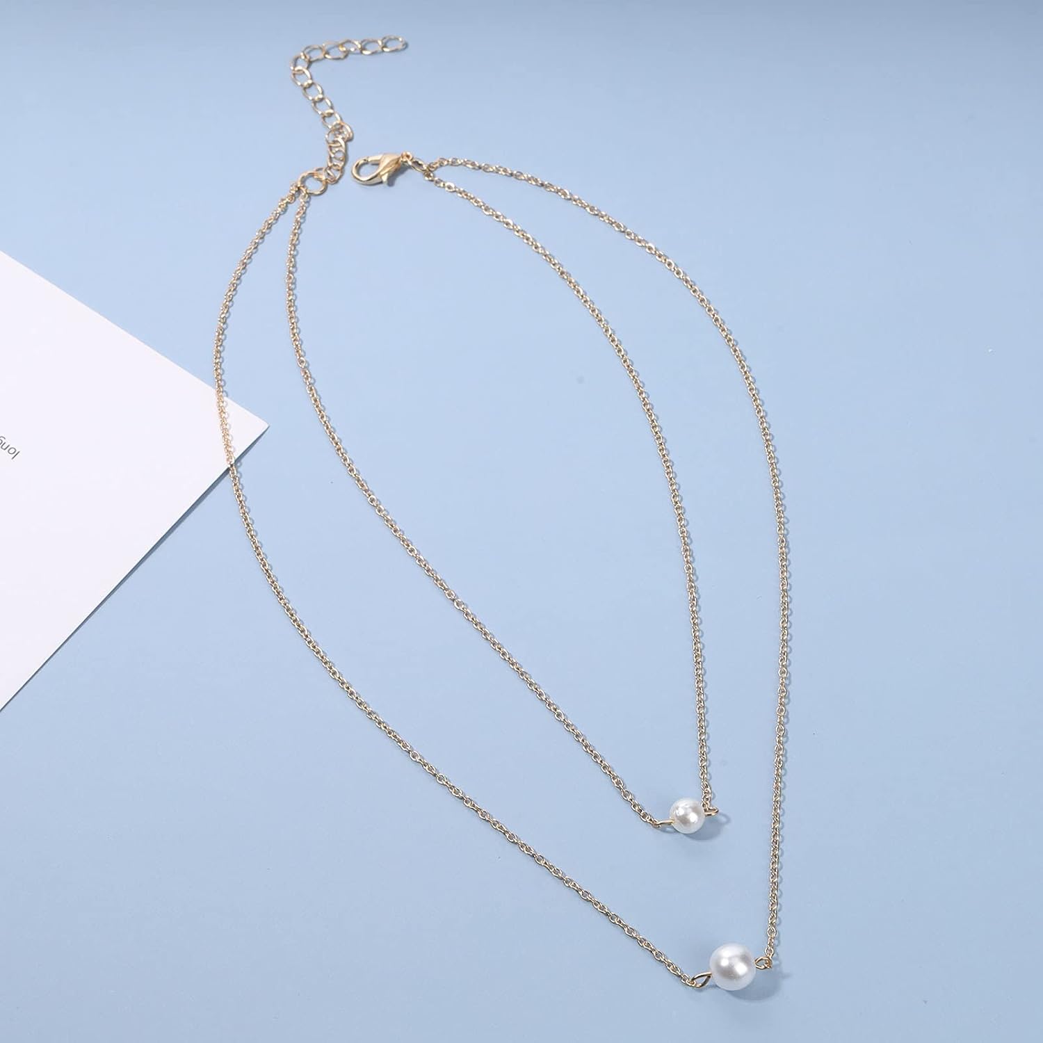 - Gold Pearl Layered Choker Necklace made of high quality alloy and artificial pearl,easy to match clothes.