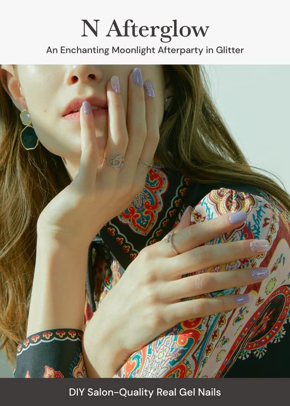 ohora Semi Cured Gel Nail Strips (N Afterglow) - Blue, Glitter, Works with Any UV/LED Lamps, Salon-Quality, Long Lasting, Easy to Apply & Remove - Includes 2 Prep Pads, Nail File & Wooden Stick