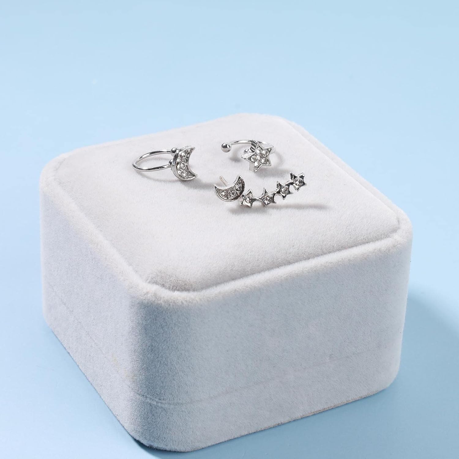 Boho Moon Star Ear Climber Earrings Silver Cz Star Ear Crawler Earrings Vintage Rhinestone Moon Cuff Earrings Cartilage Star Trailing Earrings Celestial Jewelry for Women and Girls Gifts