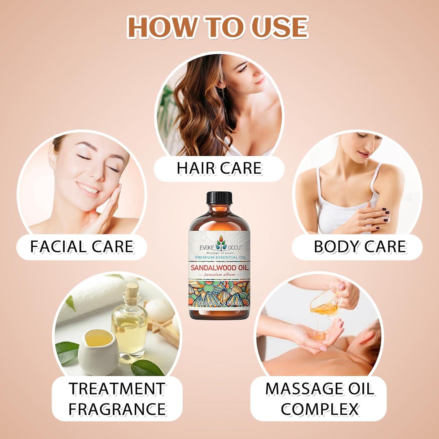 EVOKE OCCU Sandalwood Essential Oils for Skin Care, Diffuser, Perfume, Candle and Soap Making - 4 FL Oz