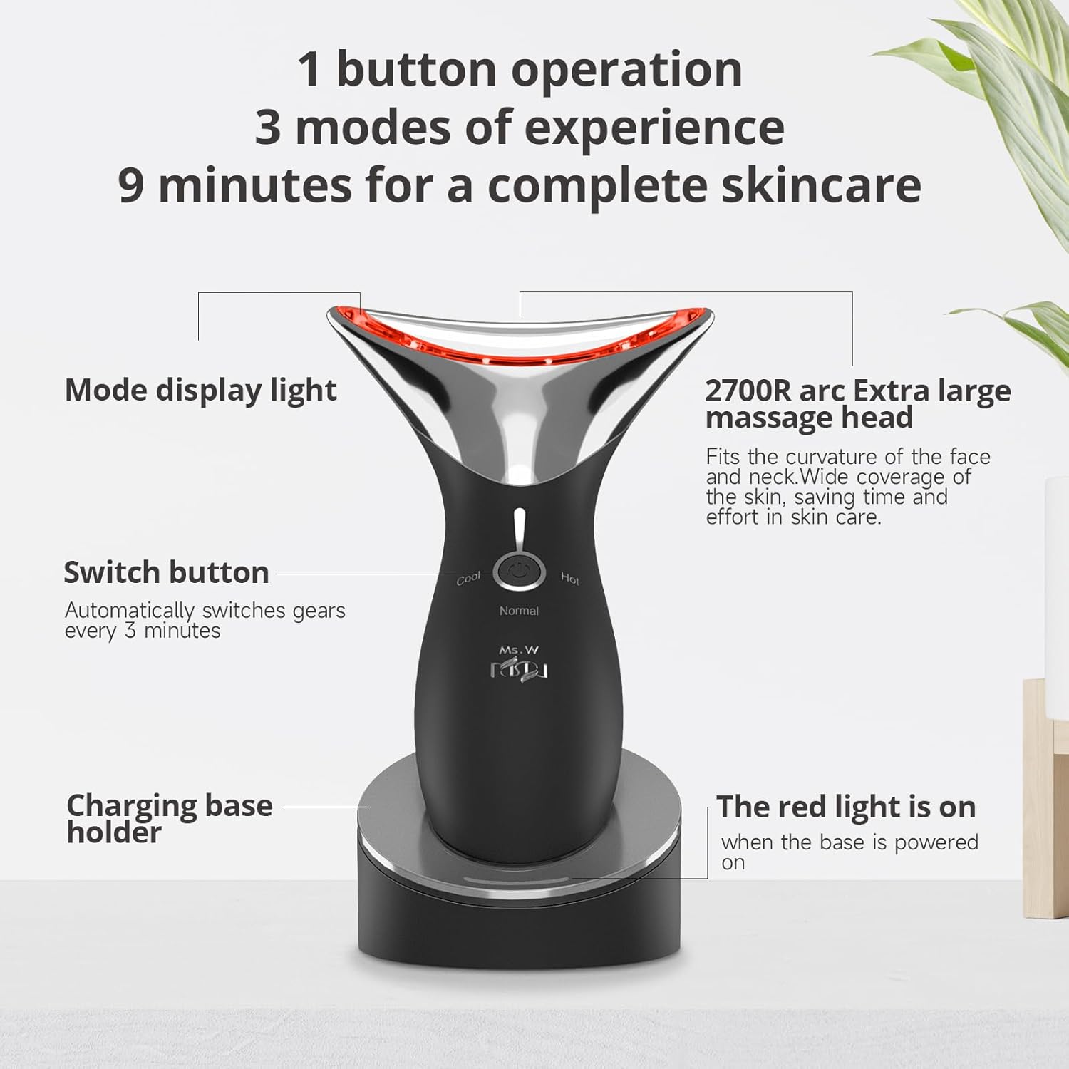 - 【What's the Benefit After Use】-----Ms.W facial massager targets auxiliary skin care effect. Slight vibration is excellent for facilitating the absorption of skincare products. The cold mode would be perfect for dark circles, puffy eyes, and cooling facial skin. The heat is great for relaxing your facial muscles, helping with dry lines, smoothens, and soothing skin. Let your face be fresher, brighter, and healthier.