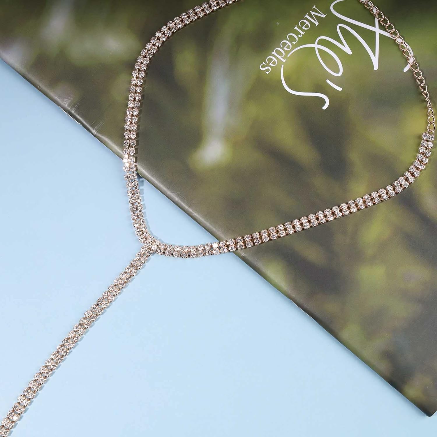 Boho Rhinestone Crystal Y Necklace Tennis Chain Y Lariat Necklace Long Gold CZ Drop Chain Necklace Sparkle Party Nightclub Necklace Chain Jewelry for Women and Girls