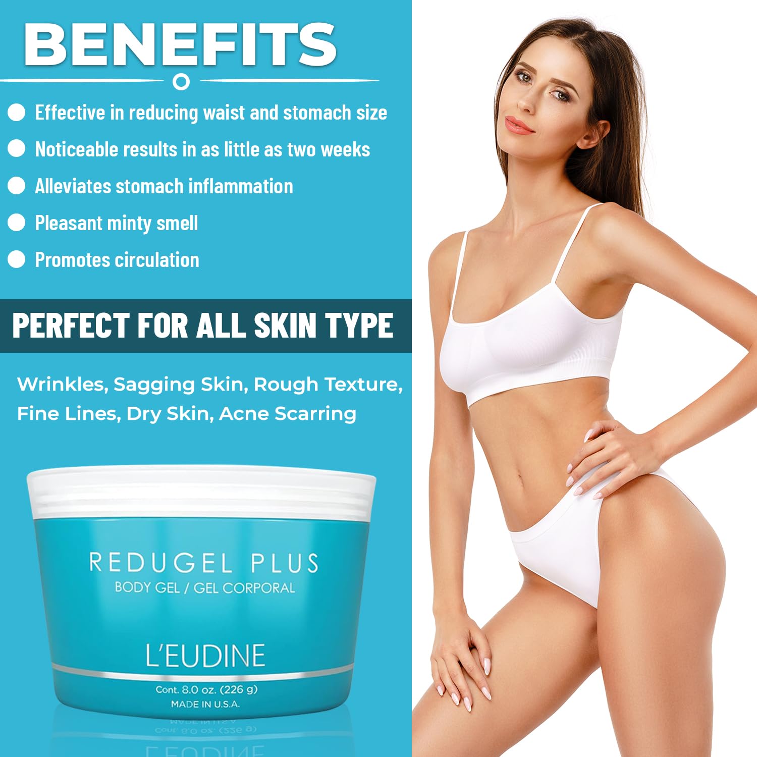 L’EUDINE Redugel Plus Skin Tightening Cream for Body, Firming Cream with Mint Oil, Field Horsetail, Marine Algae, Maca Extract, Skin Firming and Tightening Lotion – 8oz