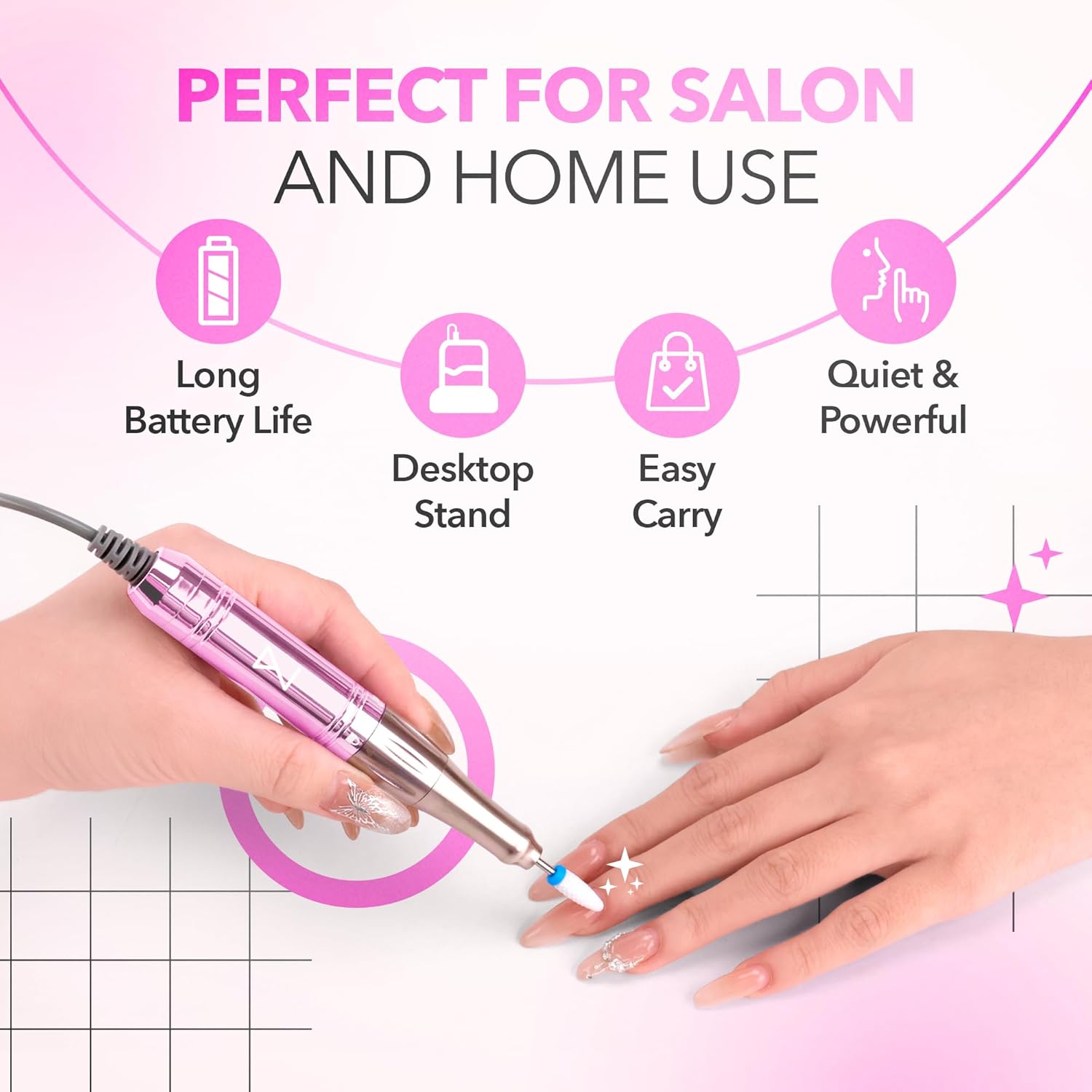 - Easy to use with Tailored Speed & Superior Control: Our nail drills come with adjustable speed gears, portable design, and long lasting battery. This portable nail drill is an essential tool for every respectable salon. Handle everything from gel polish removal to acrylic nail prep with ease.