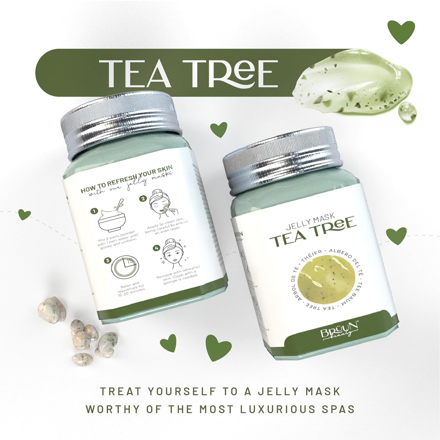BRÜUN Peel-Off Tea Tree Jelly Mask for Face Care – A 23 fl oz Rubber Jar for 30 to 35 Treatments – A Skin Care Moisturizing Gel Mask of Spa Set for Men, Women and Adults