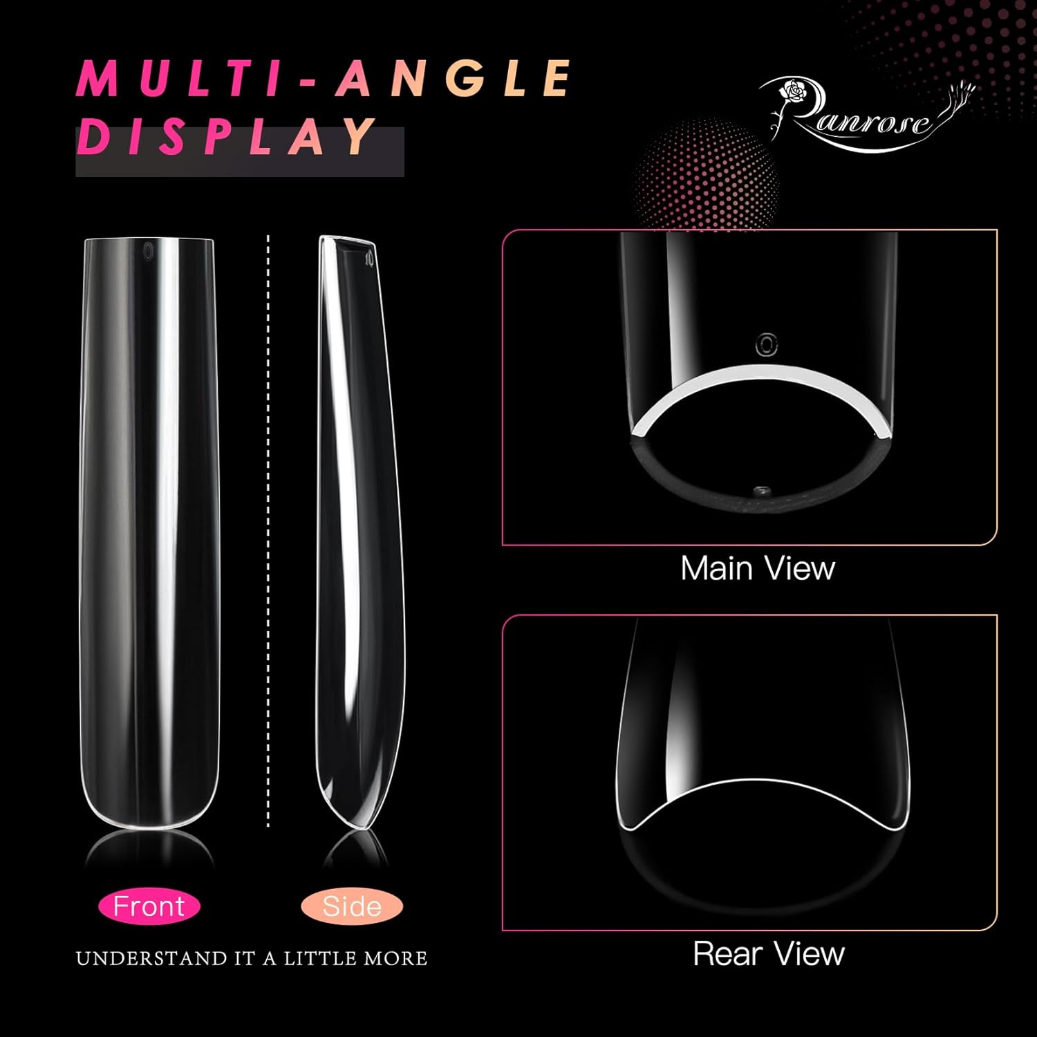 Ranrose Extra Long Nail Tips,240PCS XXXL Square Acrylic Tips Full Cover Clear Straight Tapered