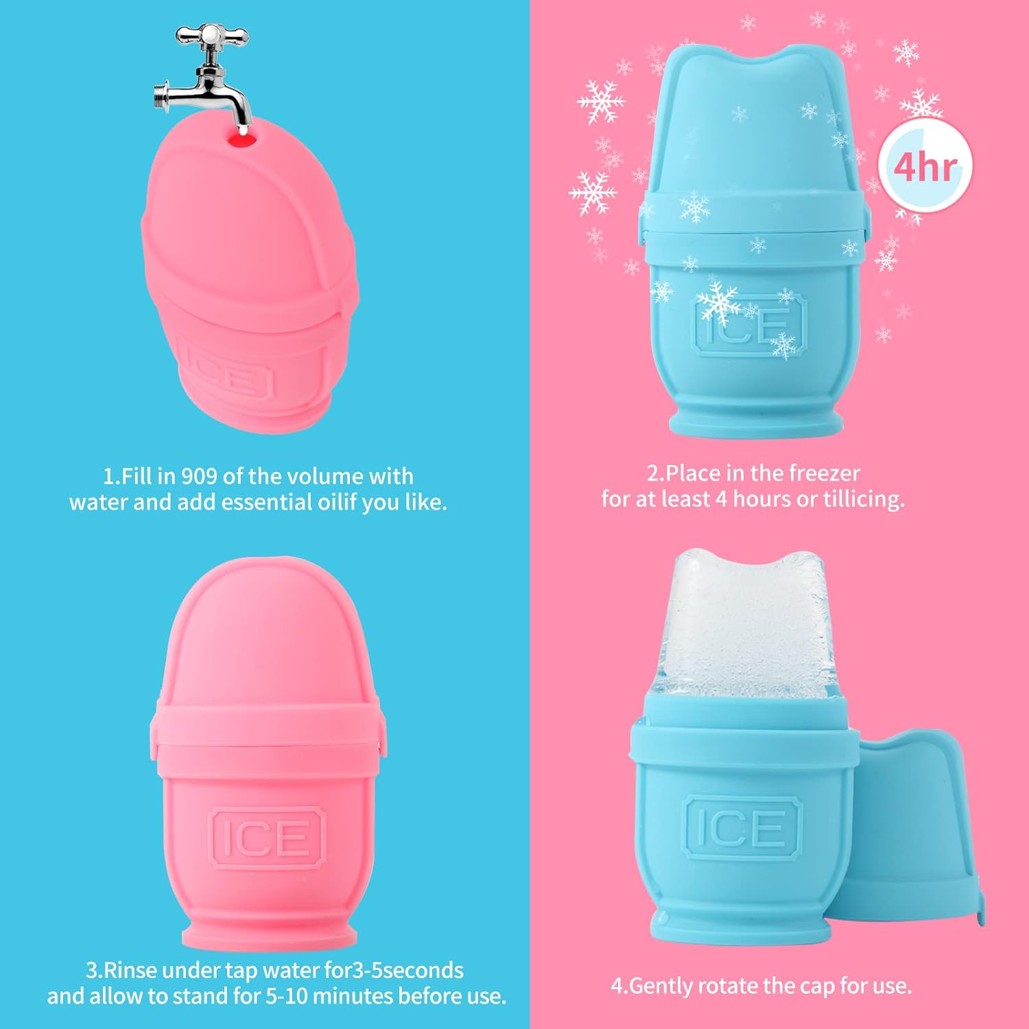 - [Relieve Pain and Stress] After applying the skin care product, roll the ice cube back and forth over the skin to assist the serum sink deeper. Furthermore, the cooling impact of ice aids in the relief of headaches, joint discomfort, and muscle tension or injury.