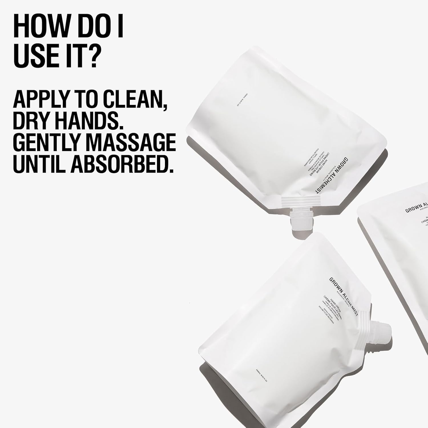 Grown Alchemist Hand Cream REFILL Pouch: Vanilla, Orange Peel. Non-Greasy Moisturizer that Soothes and Softens Hands, 500ml
