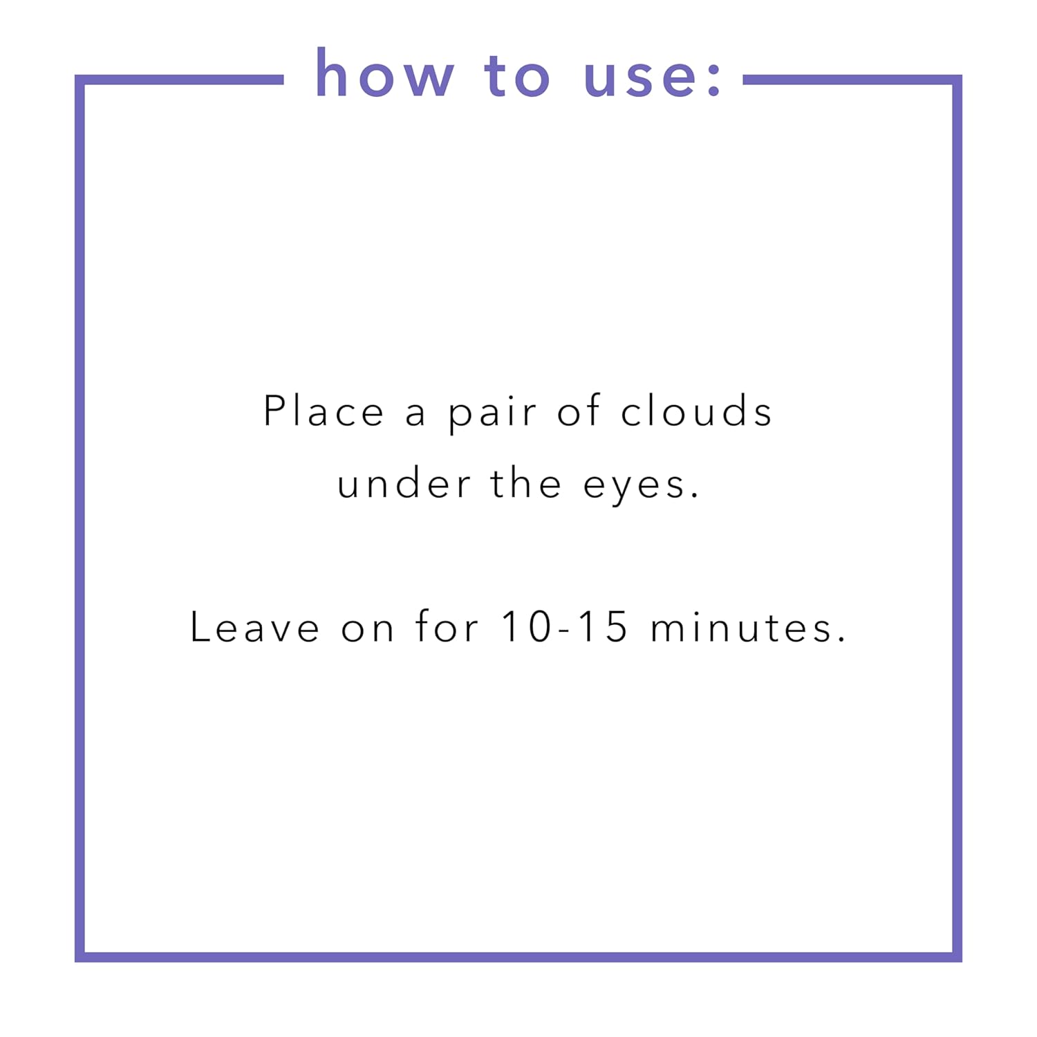 - For Best Results: Place a pair of clouds under the eyes. Leave on for 10-15 minutes.