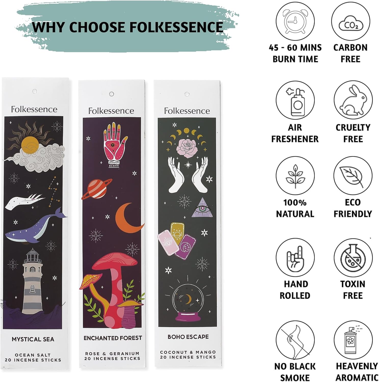 - Folkessence Incense Collection β Folkessence by Folkulture brings you this incense range which pairs beautifully with our incense holders and trays. Complete your aromatherapy set for a unique, spa-like experience at home.