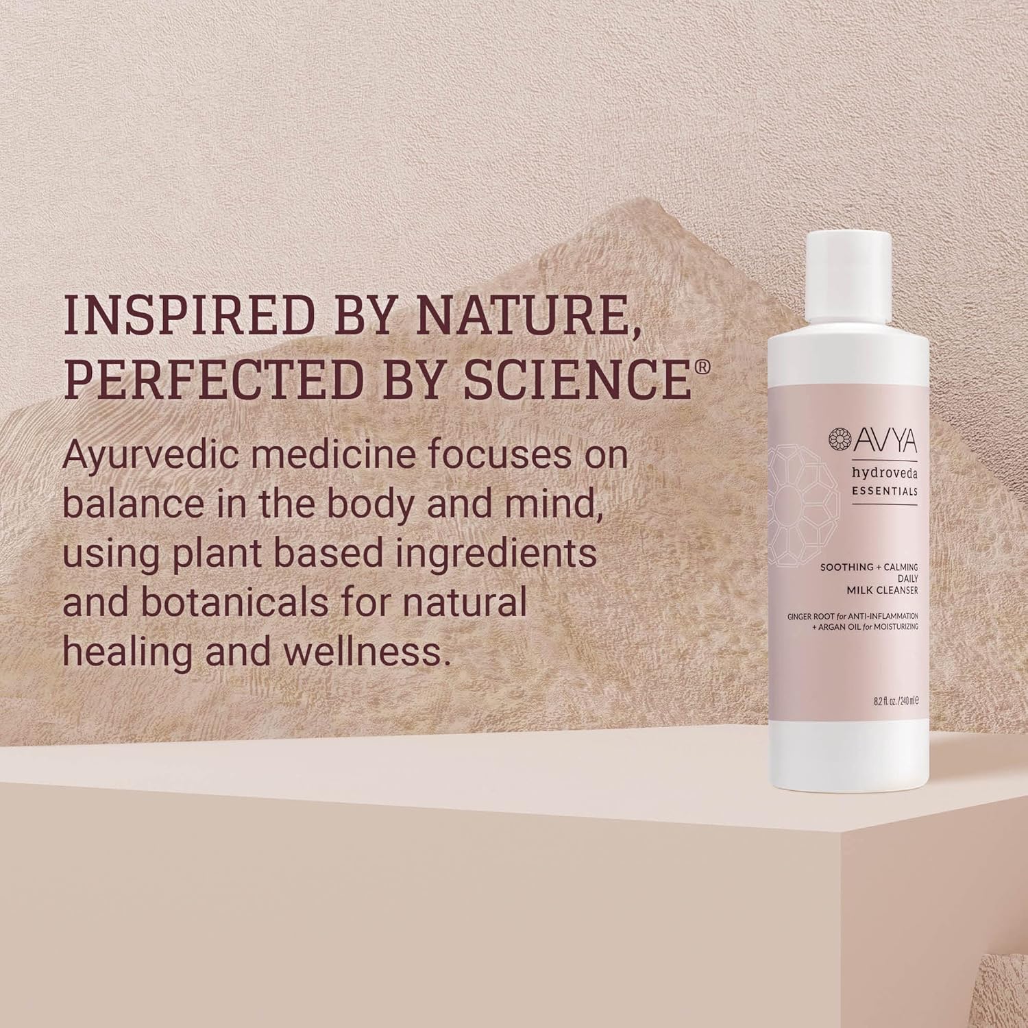 AVYA Hydroveda Essentials Daily Milk Cleanser (8.2oz) - Advanced Ayurvedic Skincare/Removes Makeup and Impurities for Natural Radiance/Ginger Blend Great for Sensitive Skin