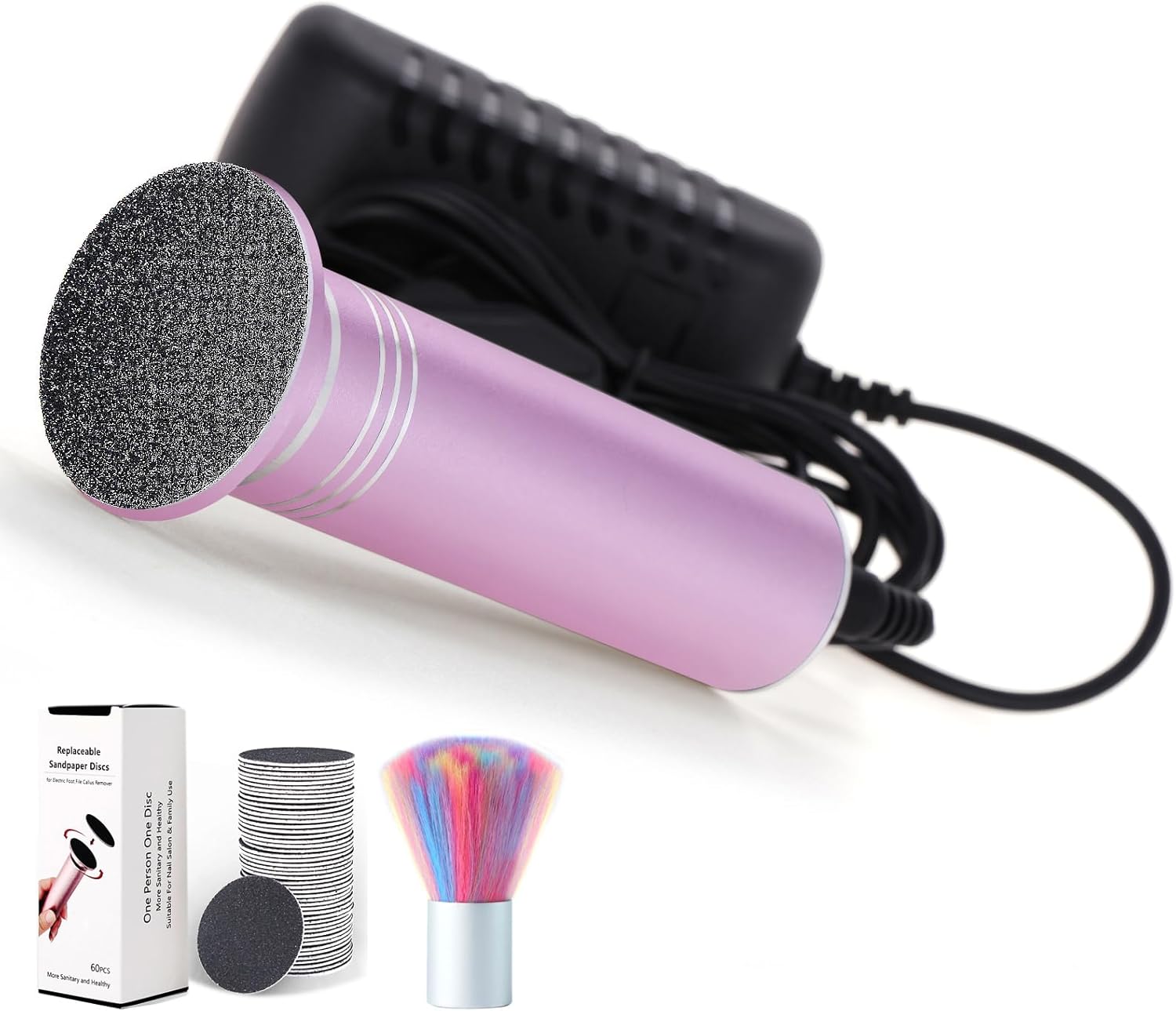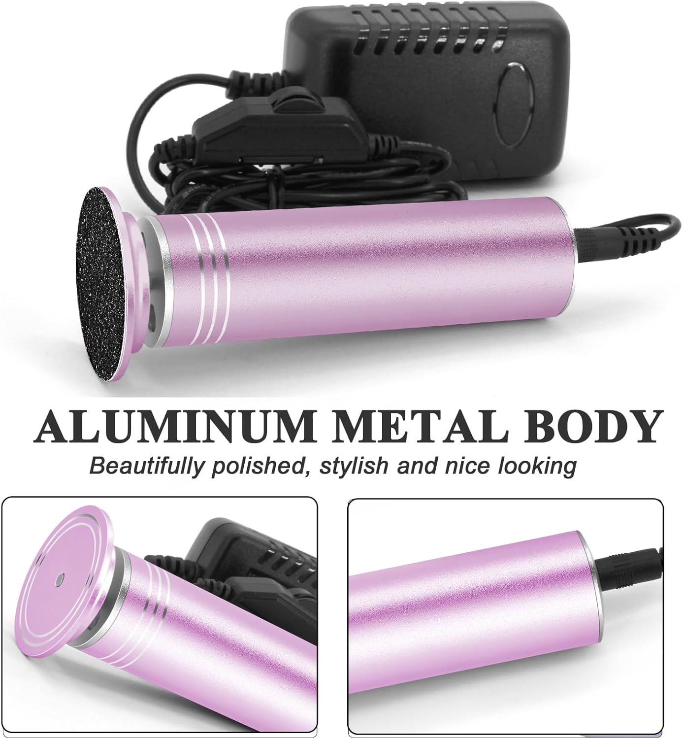 - STYLISH APPEARANCE: Aluminum alloy shell and nice polished, a perfect gift for wife, mother, girlfriend and female friends. PACKAGE LIST: 1pc electric callus remover for feet, 1pc US plug, 1 box replacement sandpaper disks, 1pc user manual, 1pc clean brush.