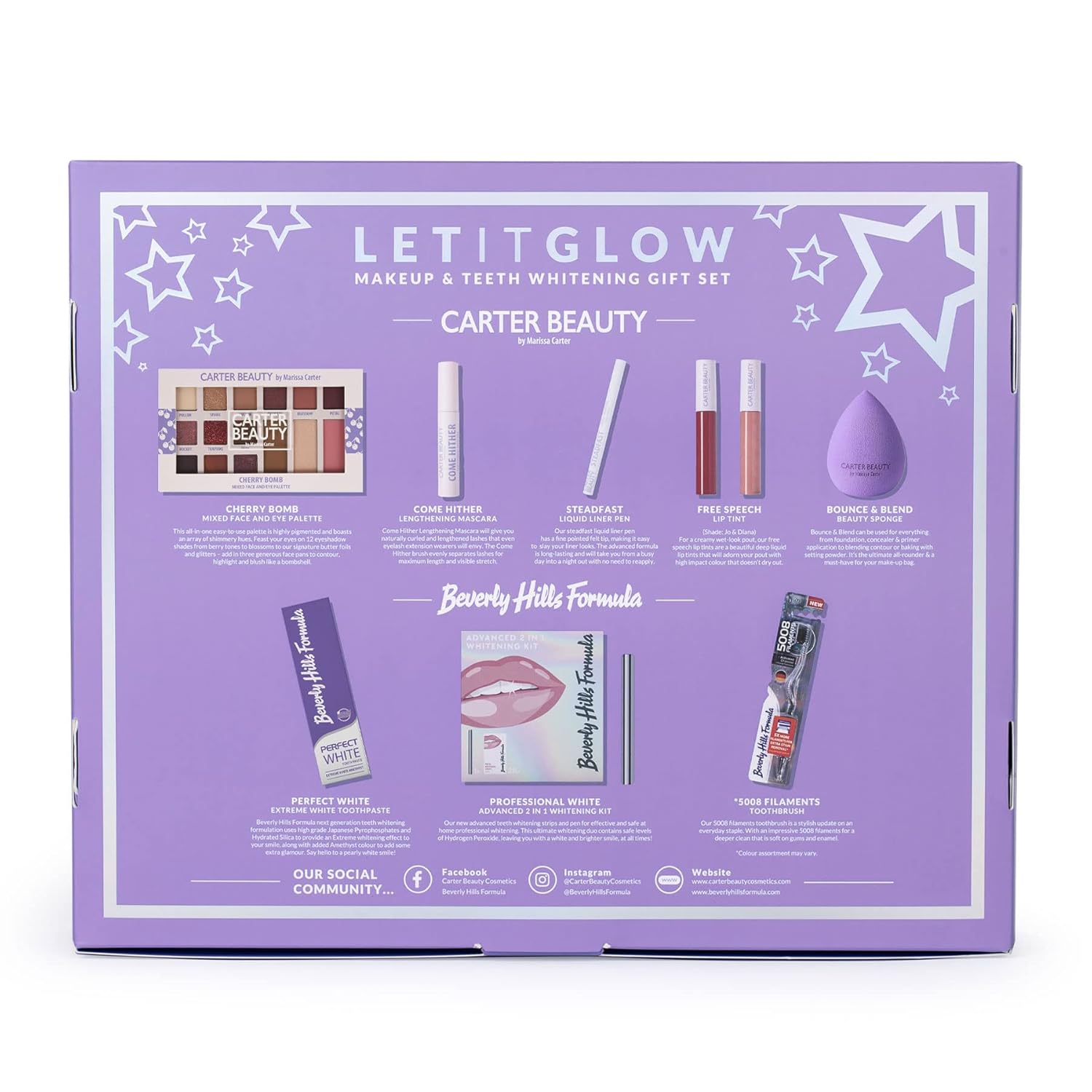 Carter Beauty Let It Glow Make Up and Teeth Whitening Set for Women 10 Pc