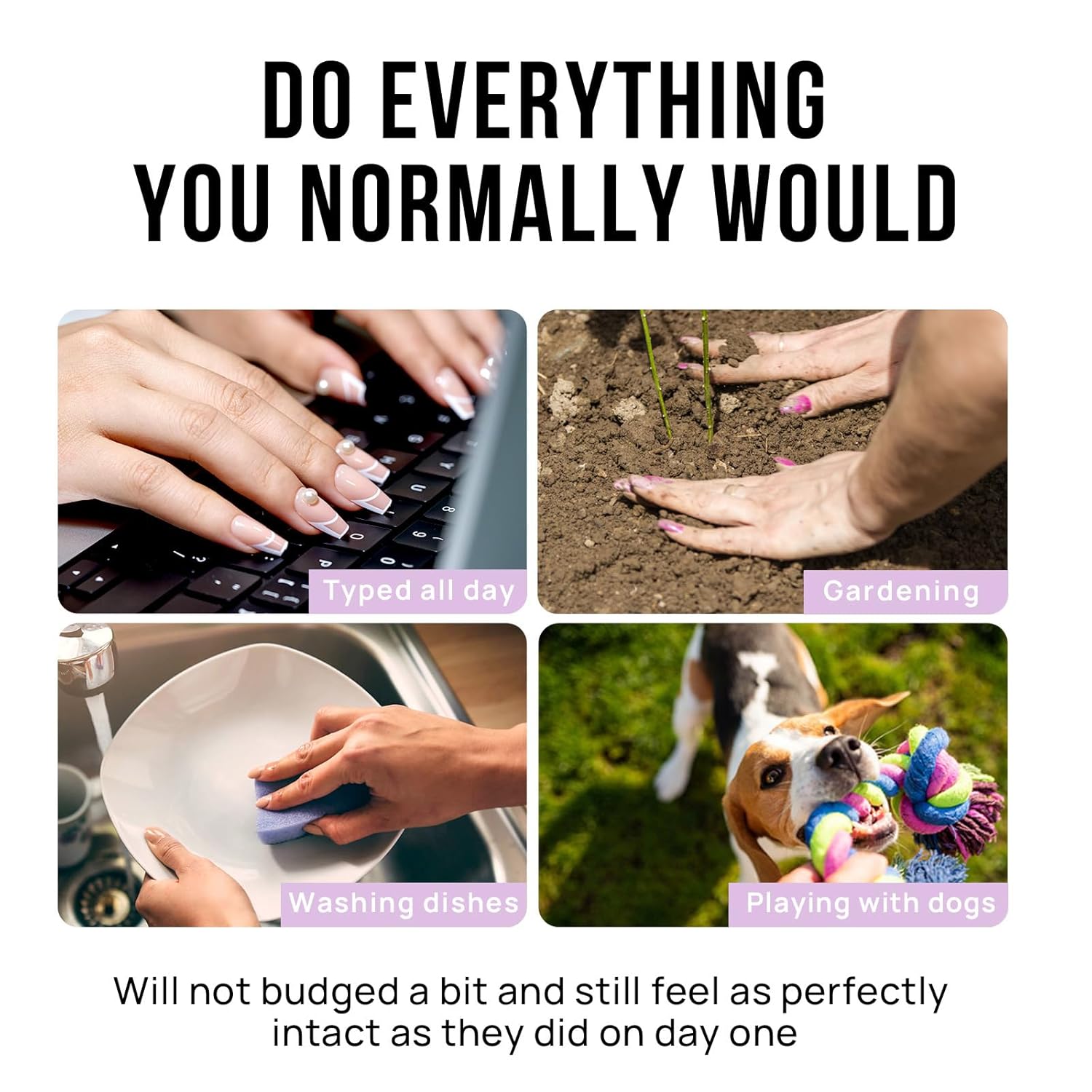 - Do Everything You Normally Would: All BTArtbox acrylic press on nails offer feature protective building gel finish so that you are able to do everything you normally would, such as typing, gardening, houseworking or playing with your pet. They will not budged a bit and still feel as perfectly intact as they did on day one