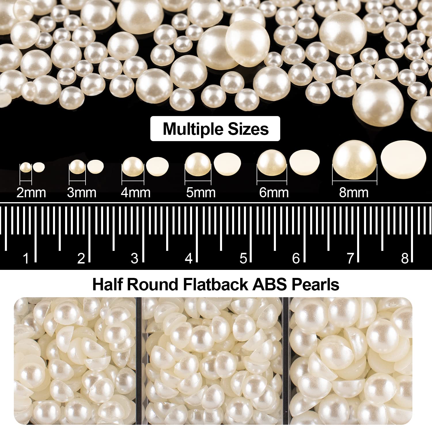- 💎COLORFUL, MULTI-SIZE AND GREAT AMOUNT -- This Set Provides 12 Colors of Nail Rhinestones With 4 Sizes(2mm, 3mm, 4mm, 5mm), And Flatback Half Round Beige Pearls With 6 Sizes(2mm, 3mm, 4mm, 5mm, 6mm, 8mm). Approximately 5060 Pcs of Gems Beads in Total.