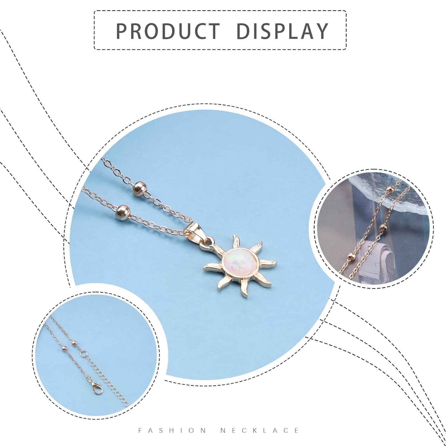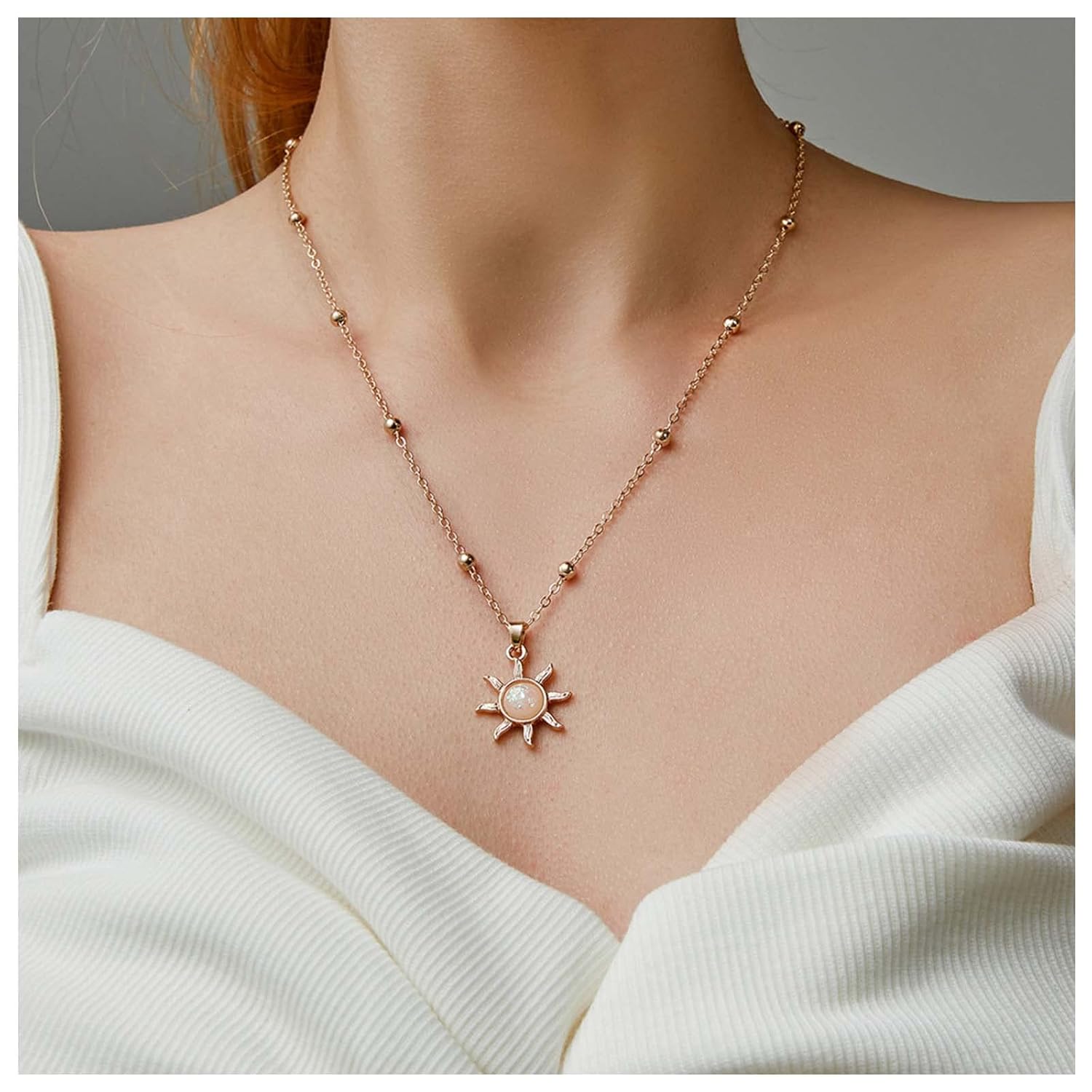 Bohemia Sun Choker Necklace Chain Sunflower Opal Pendant Necklace Gold Satellite Necklace Minimalist Sunflower Necklace Chain Jewelry for Women and Girls