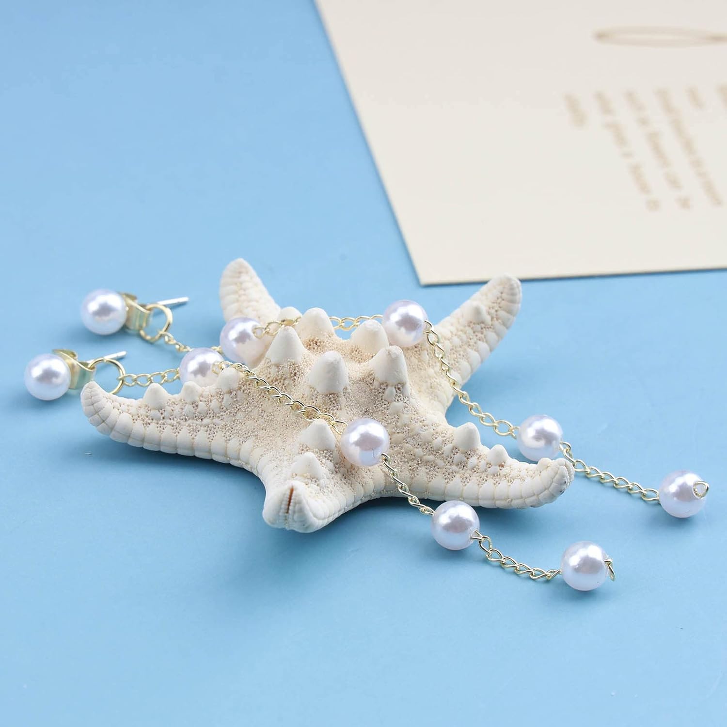 Boho Pearl Dangle Earrings Gold Pearl Drop Stud Earrings Long Pearl Tassel Earrings Vintage Pearl Linear Earrings Jewelry for Women and Girls