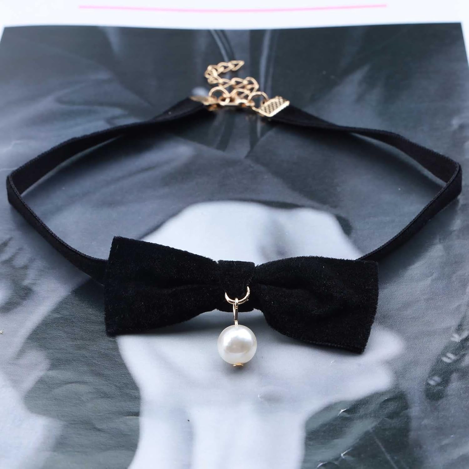 Vintage Satin Choker Necklace Pearl Pendant Necklace Black Bow Necklace Punk Leather Collar Necklace Chain Jewelry for Women and Girls