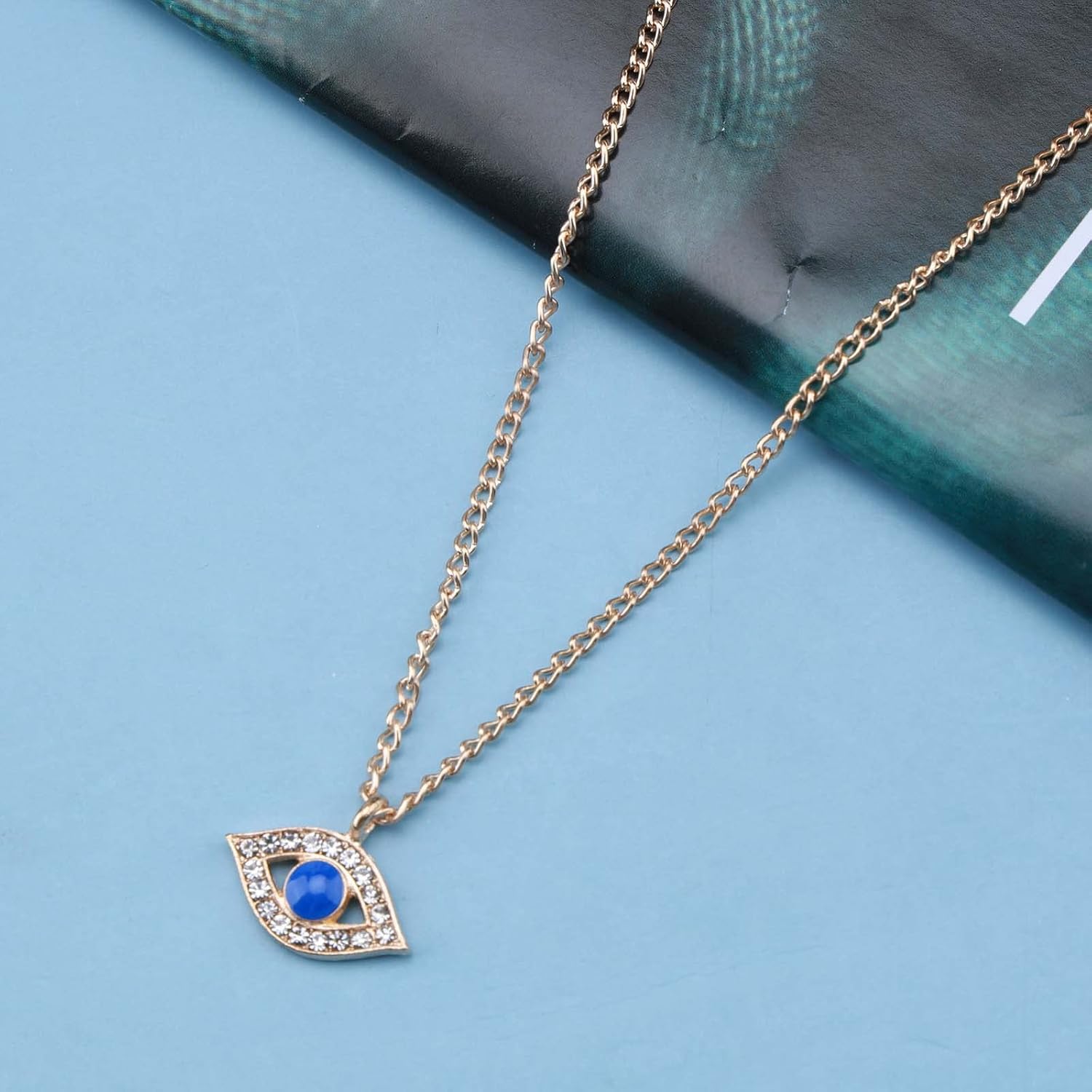 Vintage Rhinestone Evil Eye Pendant Necklace Gold Lucky Eye Choker Necklace Turquoise Eye Chain Necklace Cz Paved Talisman Necklace Protection Chain Jewelry for Women and Girls