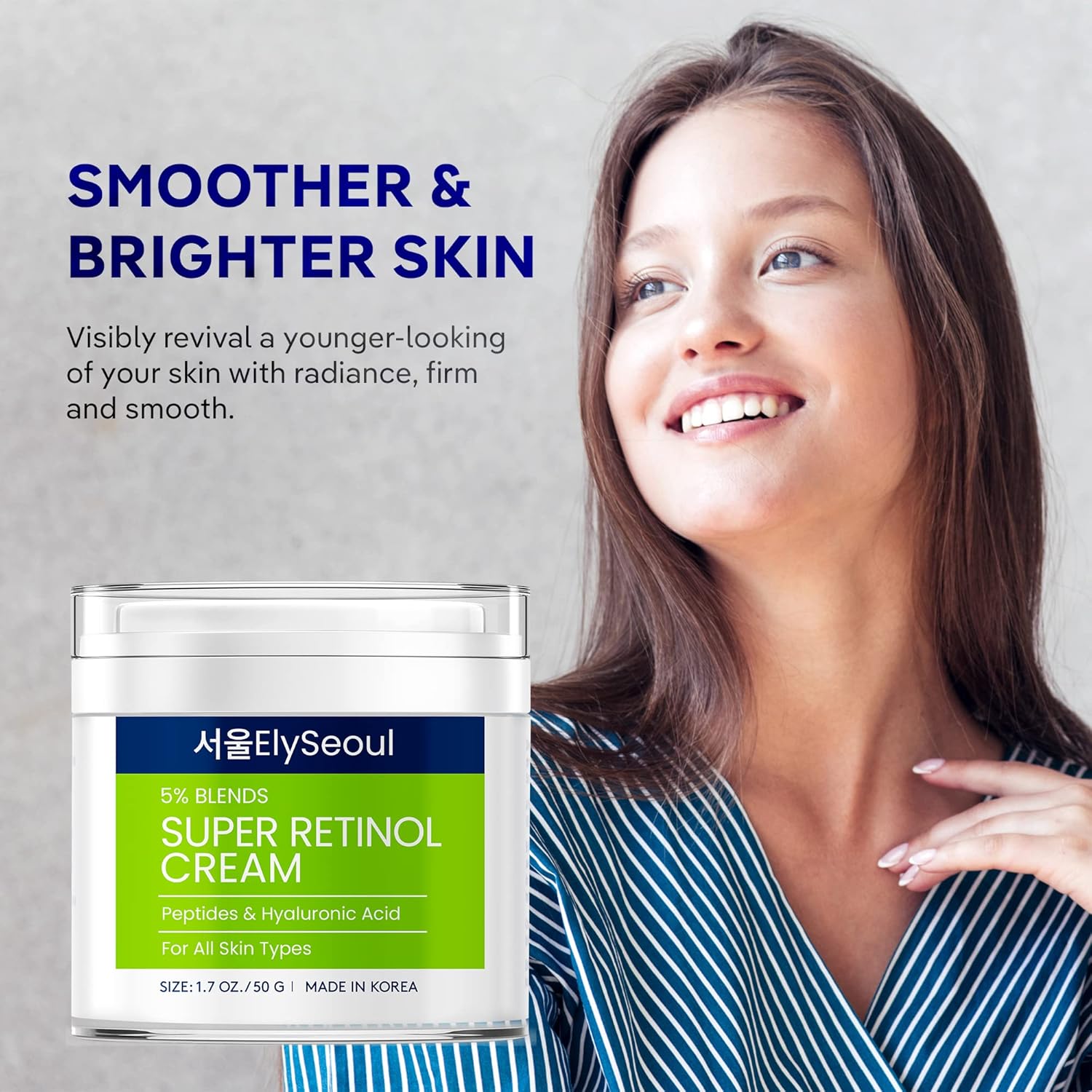 Retinol Cream for Face Korean Skincare: Anti-Aging Collagen Peptides & Hyaluronic Acid Face Cream for Women, 1.7 oz.