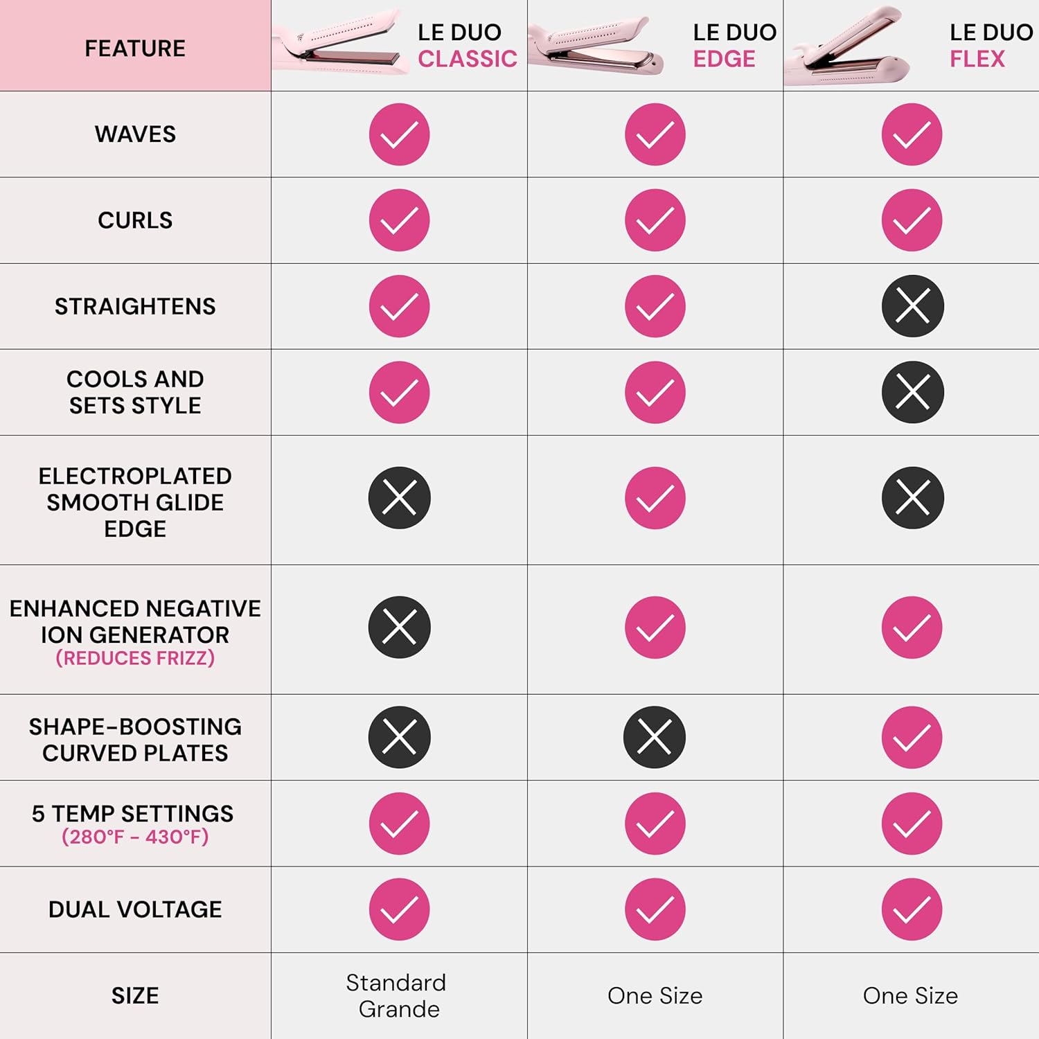 - VERSATILITY FOR ALL YOUR FAVORITE LOOKS - Whether you’re looking for smooth, sleek strands or beautiful curls and waves, Le Duo lets you achieve it all.