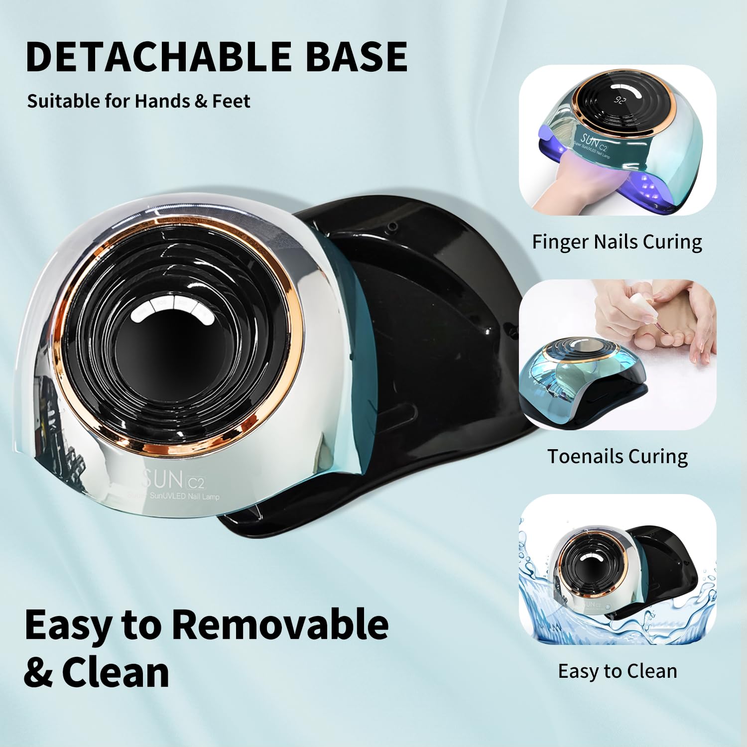 - 💅【Coloured Glaze Blue Paint& ABS Material】 ABS Material, make this gel nail lamp have long service lifetime. If the surface is accidentally stained with nail polish, just wipe it gently with a cotton cloth. Detachable base design is more convenient for toenail gel drying. Hands and feet Mode can switch at will.