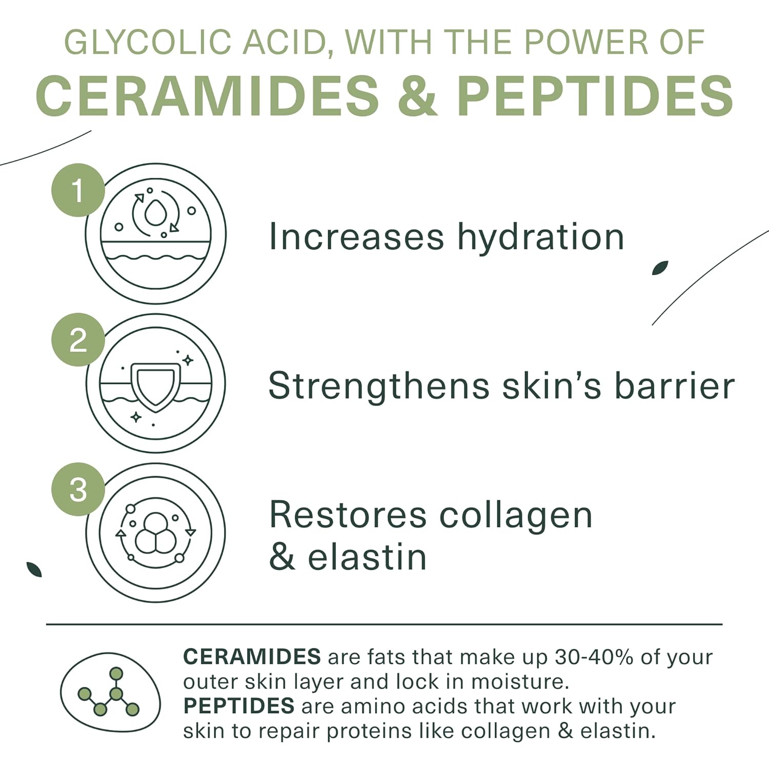 Botanic Tree Hydrating Glycolic Acid Cleanser - Exfoliating Face Wash - Face Cleanser for Women - Also with Ceramides & Peptides, Gently - for Dewy Bouncy Skin - 6oz