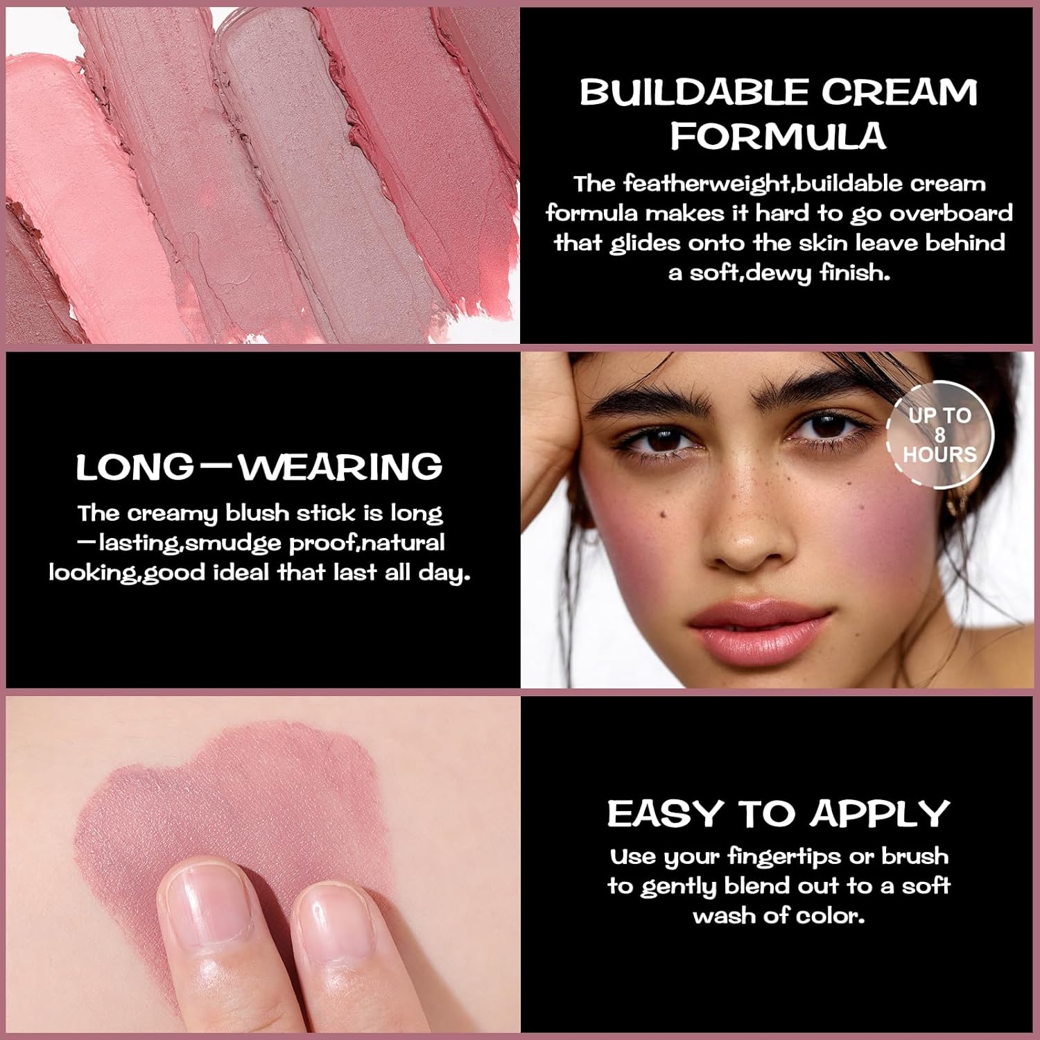 - LONG WEARING BLUSH STICK--Hydrating, blendable and lasting formula.The creamy blush stick is long-lasting, sweatproof, natural Looking, good ideal that lasts all day.