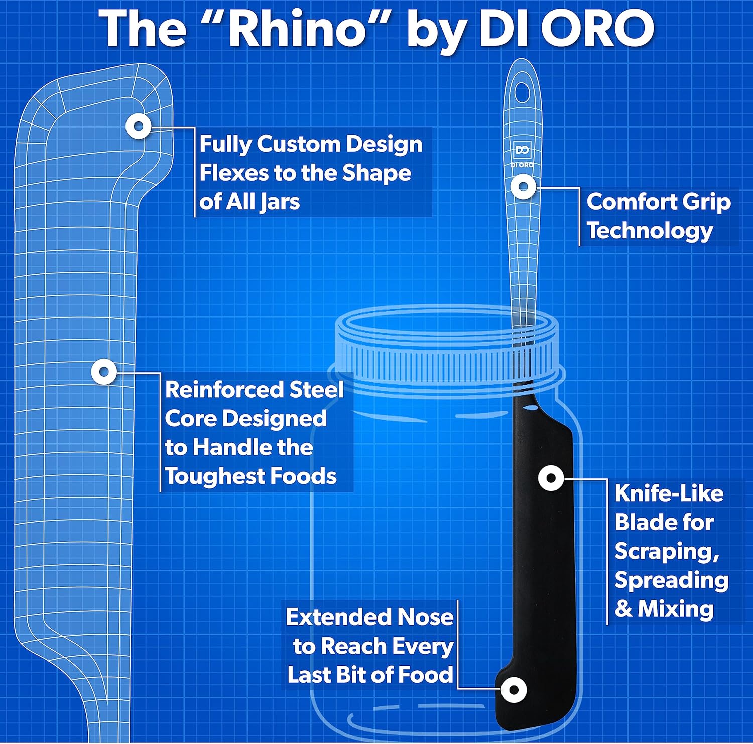 DI ORO Silicone Jar Spatulas for Scraping - Rubber Spatulas Silicone Heat Resistant - Kitchen Spatulas Nonstick Cookware Safe - Silicone Utensil Set for Blenders, Mixing, Baking, & Makeup (5pc, Black)