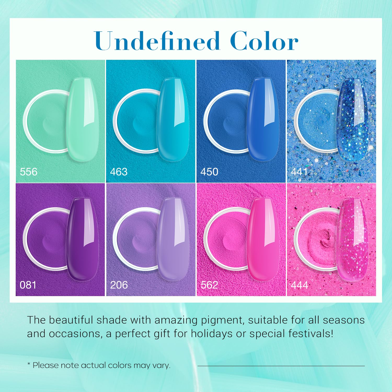 - 【New Dip Powder Nail Kit】Spring Vibrant Girl 8 colors series, including [hot pink, Blue, Green, Glitter], 4*10ml dip powder liquid set (base coat/activator/gel top/ matte top coat), 2 Nail brush replacement, 1 Nail brush, 1 Nail file, 1 Nail polishing block, 1 Dip Powder recycling tray. There are also 2 orange sticks for nails and 10 Nail Sticks for you to try colors.