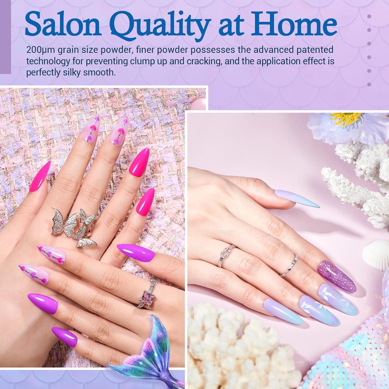 AZUREBEAUTY 42Pcs Dip Powder Nail Kit Starter - Going Summer, 32 Colors Blue Lilac Purple Pink Green Acrylic Nail Dipping Powder Set with Top/Base Coat Activator &Tray for French Art Manicure DIY Home