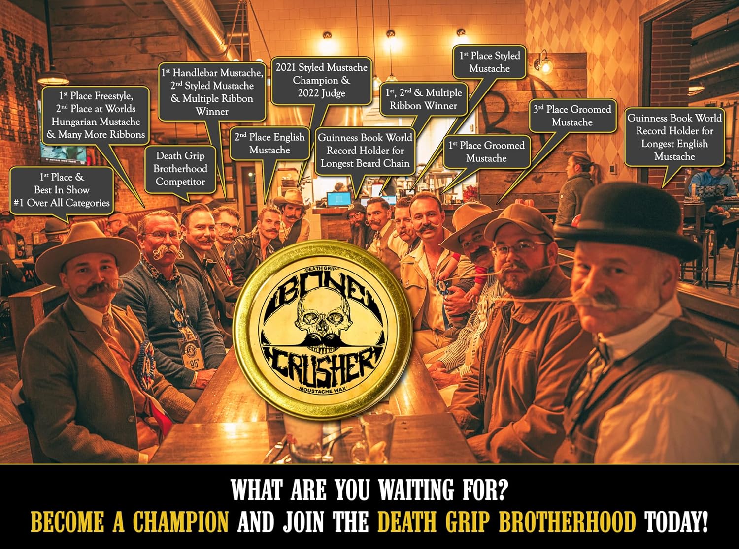Mustache Wax Extra Strong Hold | 1oz Bone Crusher Moustache & Beard Wax Tin | Grooming For Men | Perfect For Dali Curly English Handlebar Mustaches By Death Grip | Heat Source Required