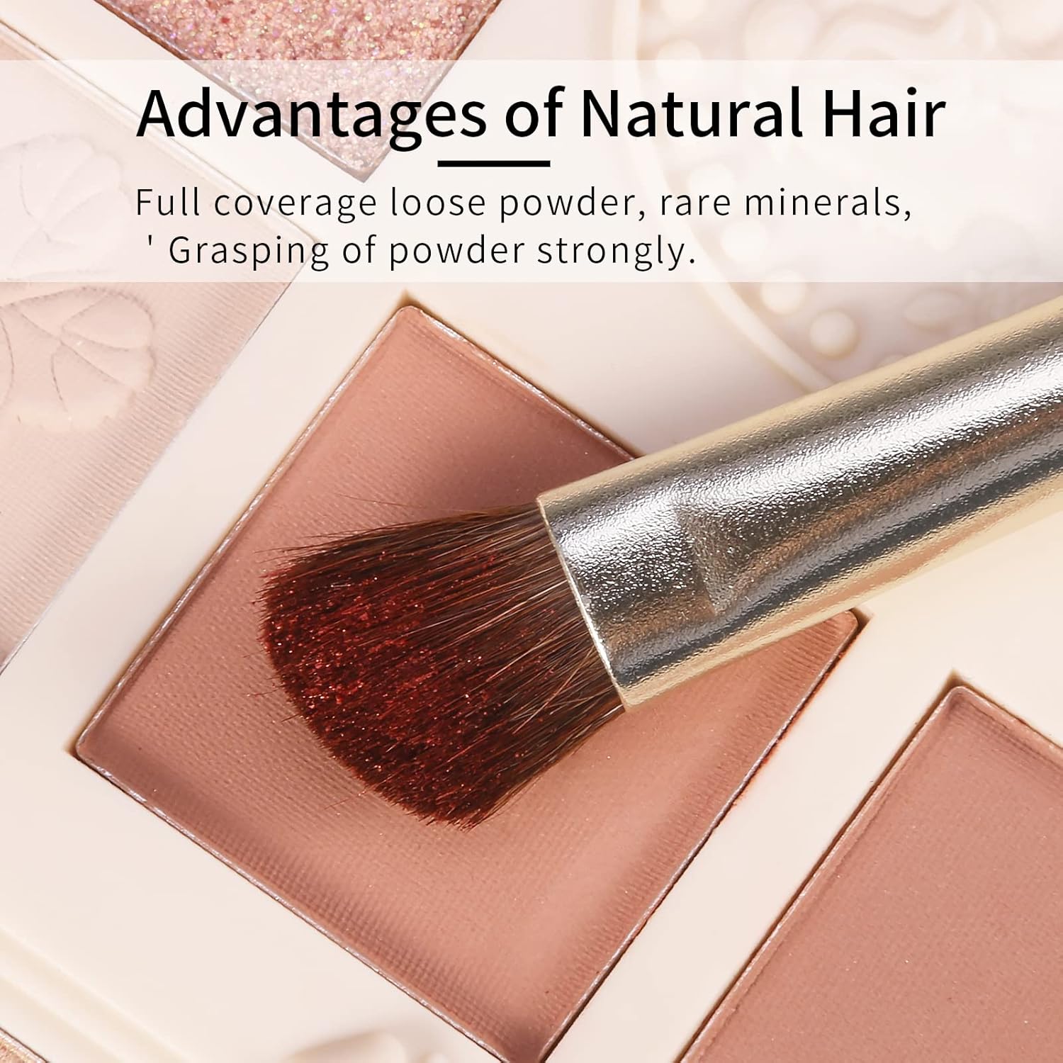 - â„ăMatte Golden Ferruleă⏠Highgrade Aluminum Alloy, Not Easy to Scratch, No Shedding, Exquisite & Durable, Angled Eye Shadow Make Brushes Real Hair, Travel Eyeshadow Brush Fit for Fast Application.