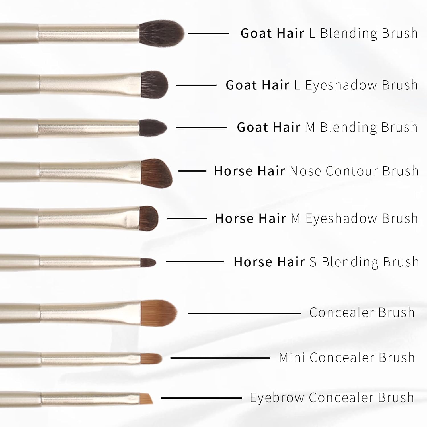 - â„ăNatural Goat Hair & Horse Hair Eye Makeup Brushes Setă⏠Deluxe Quality HairïŒSkin-friendlyïŒSoft and SmoothïŒEasy to MaintainïŒPremium Animal HairïŒReal Hair Eyeshadow Brushes Travel Set, Flat Concealer Brush Under Eye & Lip Brush, Meet the Needs of Makeup. Nice Natural Eyeshadow Brush Set Organic. Grateful Skin Friendly Makeup Brush Gift Set.