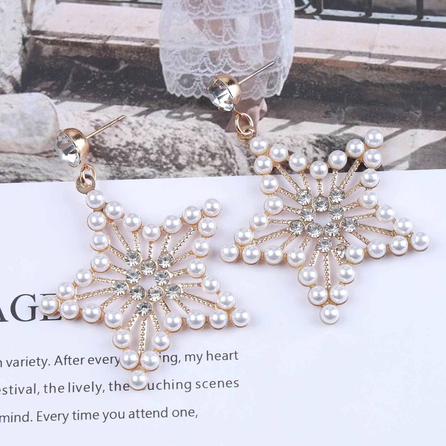 Vintage Pearl Star Drop Earrings Crystal Star Dangle Earrings Gold Rhinestone Stud Earrings Bohemian Large Star Statement Earrings Jewelry for Women and Girls Gifts