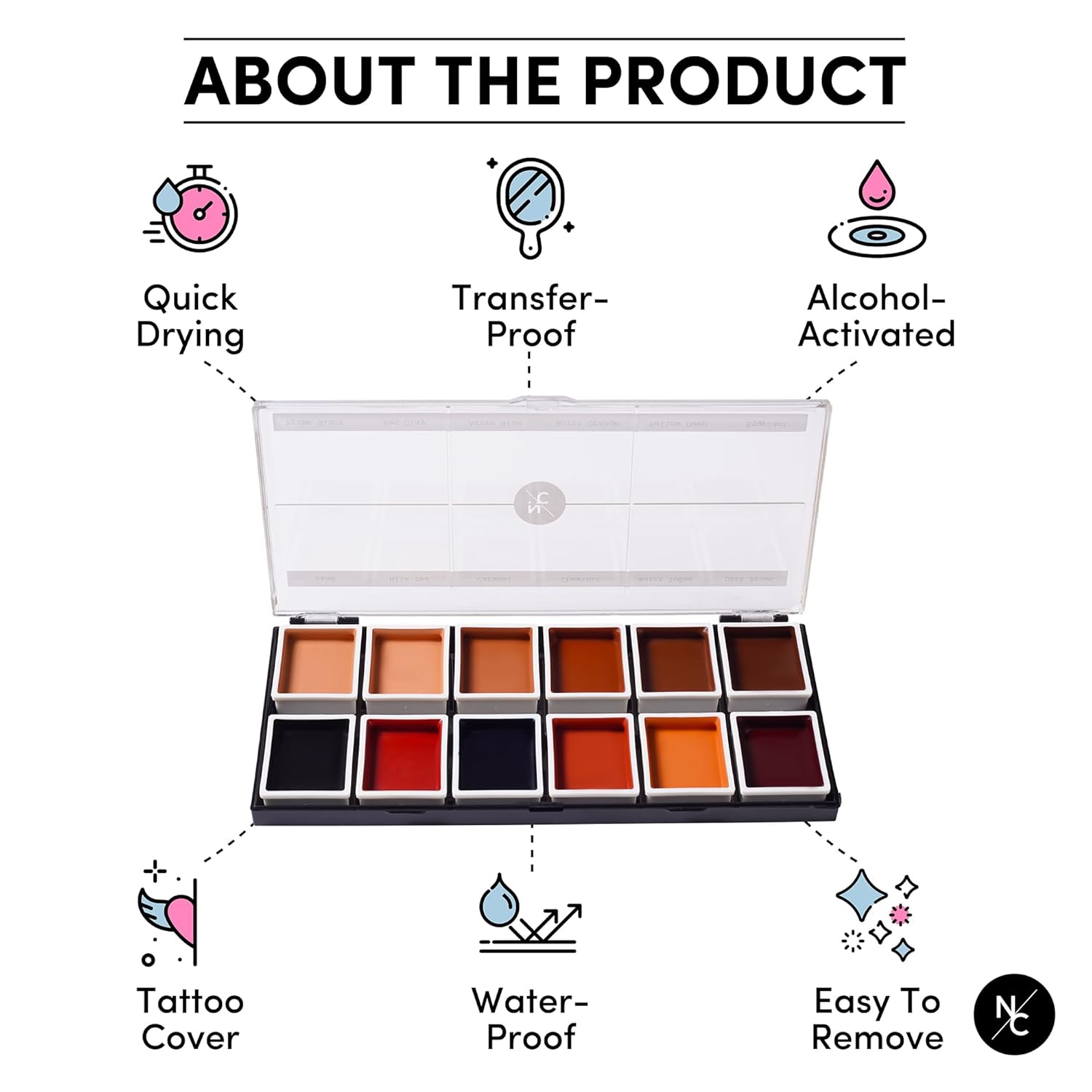12 Color Dark Flesh Tone Alcohol Activated Makeup Palette for Special Effects - Waterproof Dark Flesh Tone Makeup for Professional Makeup Artists