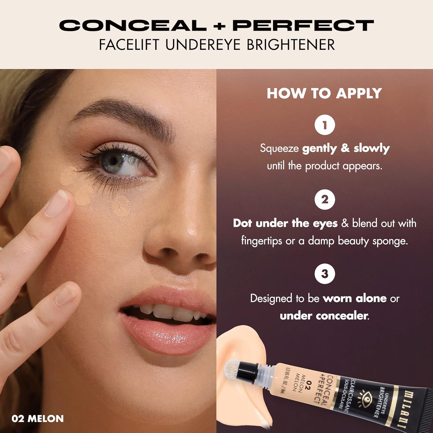 Milani Conceal + Perfect Undereye Brightener for Treating Dark Circles, Face Lift Collection - Melon