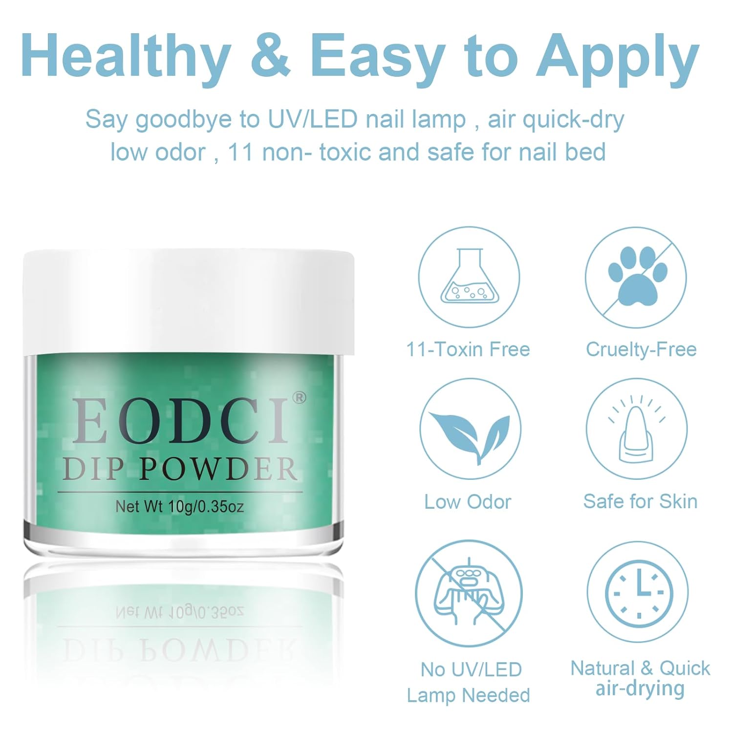 - 【No Lamp Needed】Eodci Nail Dipping Powder does not require UV/LED light to cure, is skin friendly while avoiding skin darkening and damage, safe and easy to use, suitable for beginners and professional nail salons.