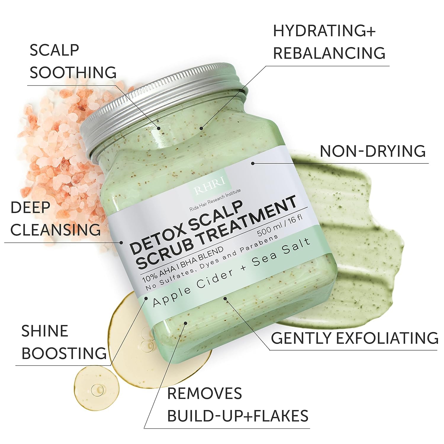 - ππππ πππππππππ π ππππππ: RHRI Green Scalp Scrub with apple cider & sea salt detoxifies, and removes build-up & excess oil for a revitalized and balanced scalp. Experience the ultimate hair refresh.