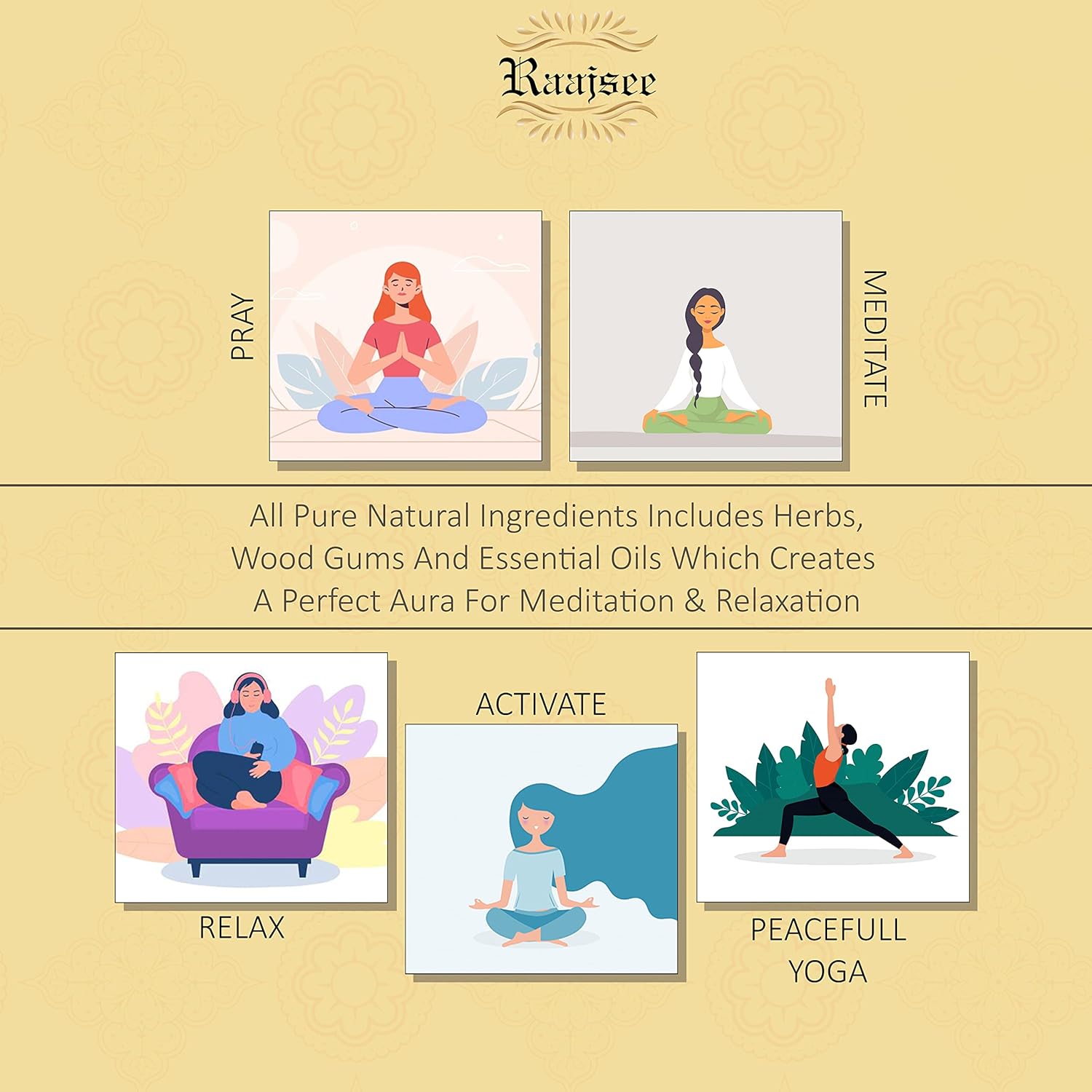- 100% NATURAL -Raajsee Palo santo incense Sticks are completely handmade MADE FROM SCRATCH by blending natural resins, Herbs, natural incense with aromatic wood powders, charred coconut powder fragrant oils, and honey. No Dipping in Toxic Chemicals, organic incense sticks non toxic