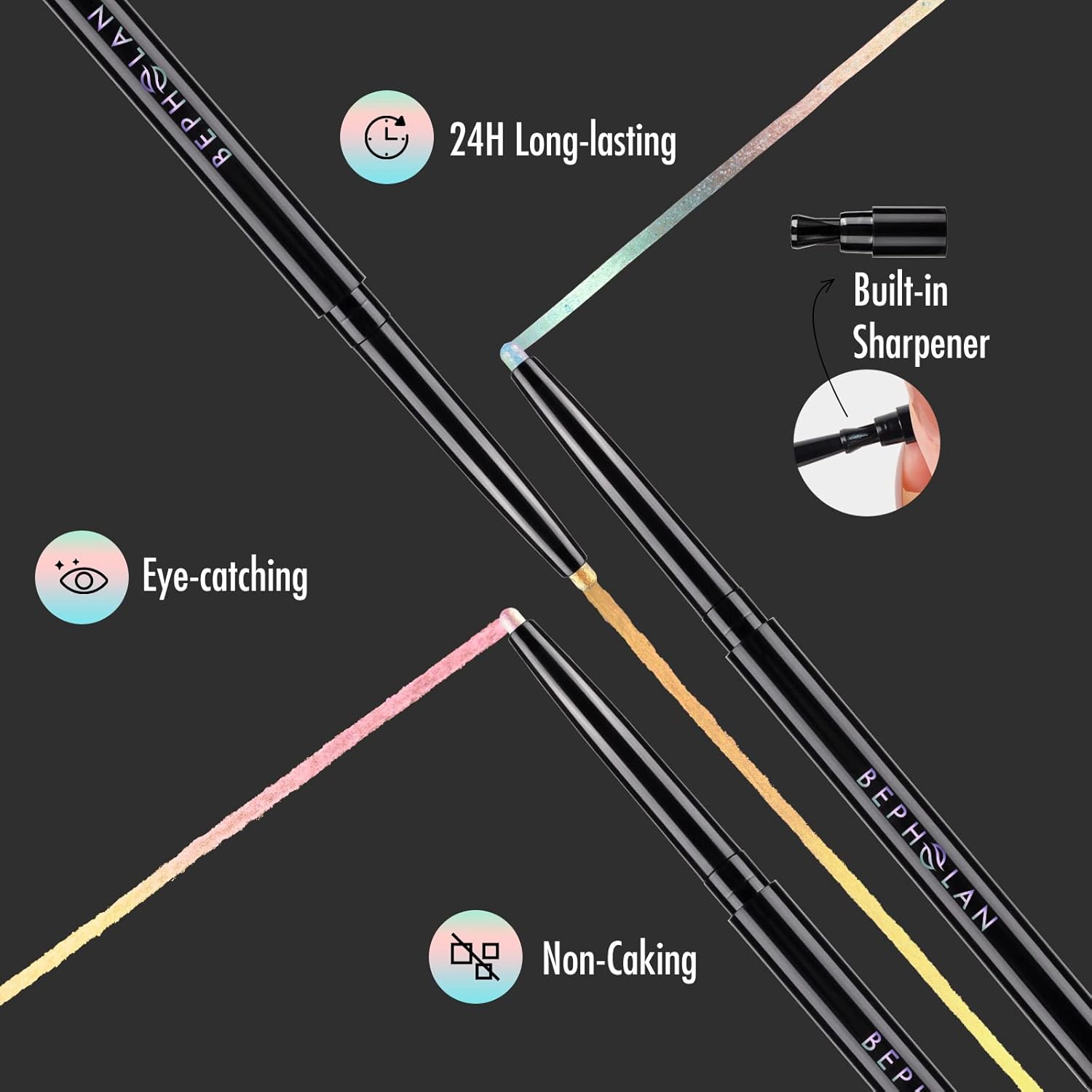 - BEPHOLAN LASER LINER COLOR UPGRADE - FANTASY COLORS: The Eyeliner is Pink Blue 2-in-1 Color Glitter Gel Eye Liner .These colors are VERY sparkly, and impactful! Look Like Mermaid