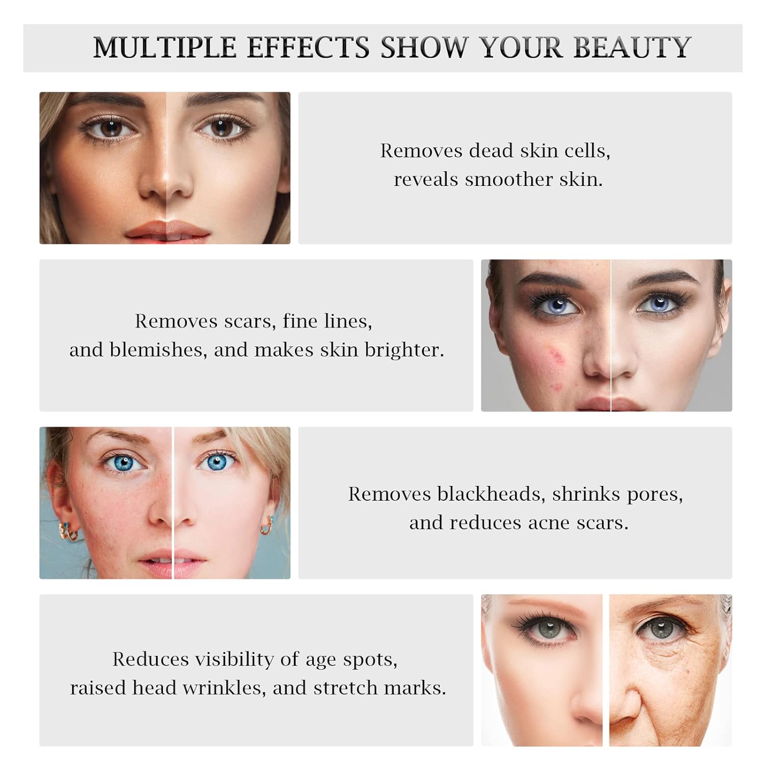 - 💎Diamond Microdermabrasion Skin Care: This diamond microdermabrasion provides a safe and effective way to improve your skin. By using sterile diamond heads to peel away dead skin cells, you can enjoy smoother, brighter, and more youthful-looking skin