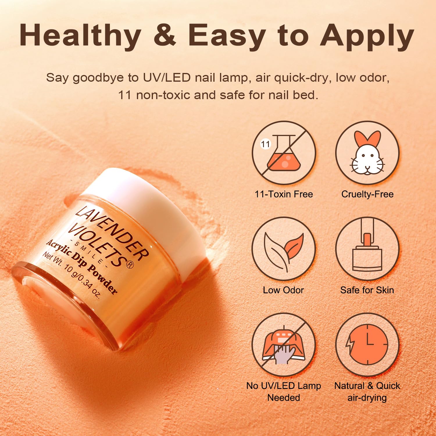 - Crafted by Lavender Violets, known for quality and innovation dipping powder, this dip powder set also includes dip powder liquid set like dip base coat, top coat, activator, brush saver, Nail Brush, Nail File, and two replacement brushes—ensuring you have everything you need for a flawless dips manicure experience. Elevate your nail game with our dip powder nail kit, designed for beauty enthusiasts who value both style and convenience.