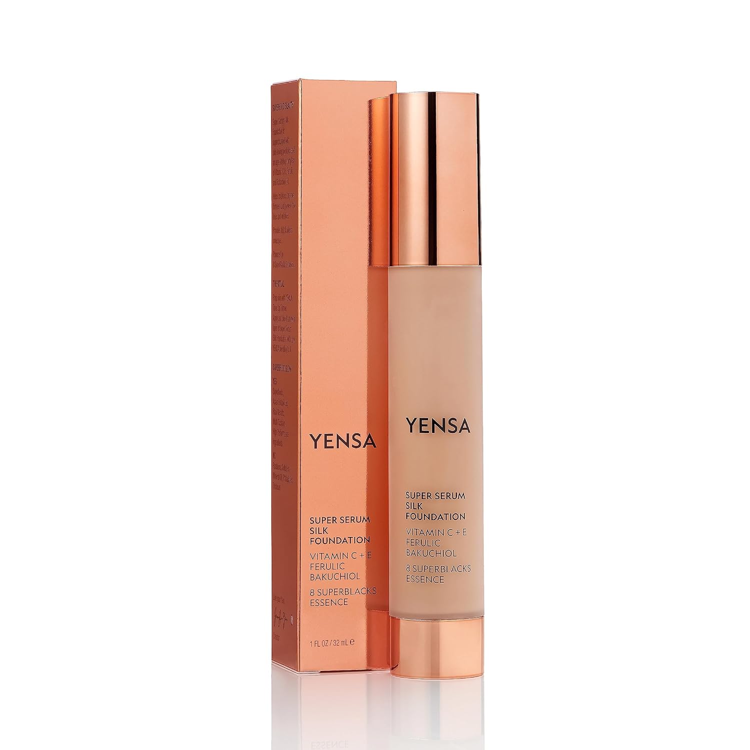YENSA Super Silk Foundation - Full Coverage, Age-defying complex of Vitamin C, E, Ferulic, and Bakuchiol Oil (Deep 4) 1.0 fl oz