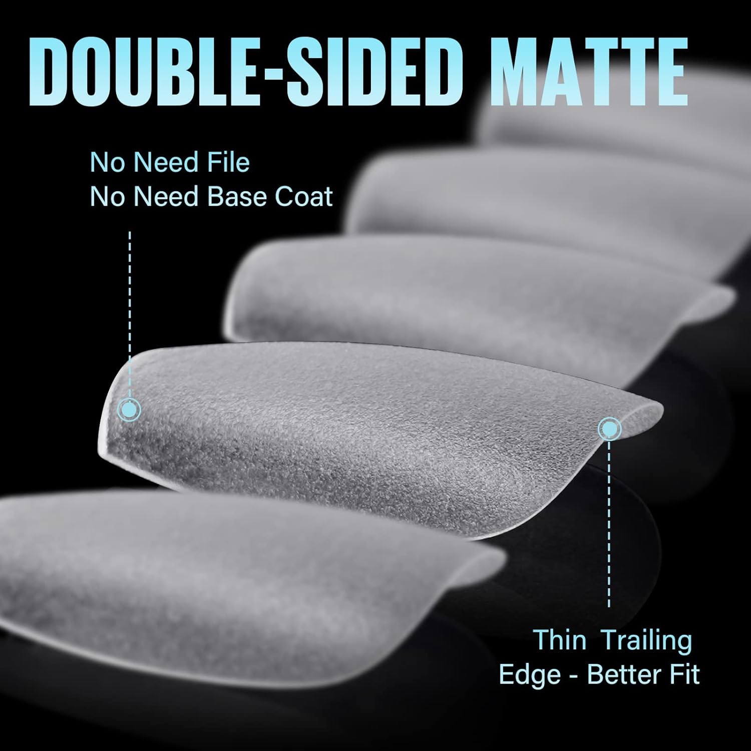 - 【Pre Buffed Nail Tips】The upgraded pre-buffed nail tips give you the privilege of "no file, no base coat". Protect your nail beds while saving time. Double-sided matte acrylic nails have stronger adhesion and can be pasted more firmly.