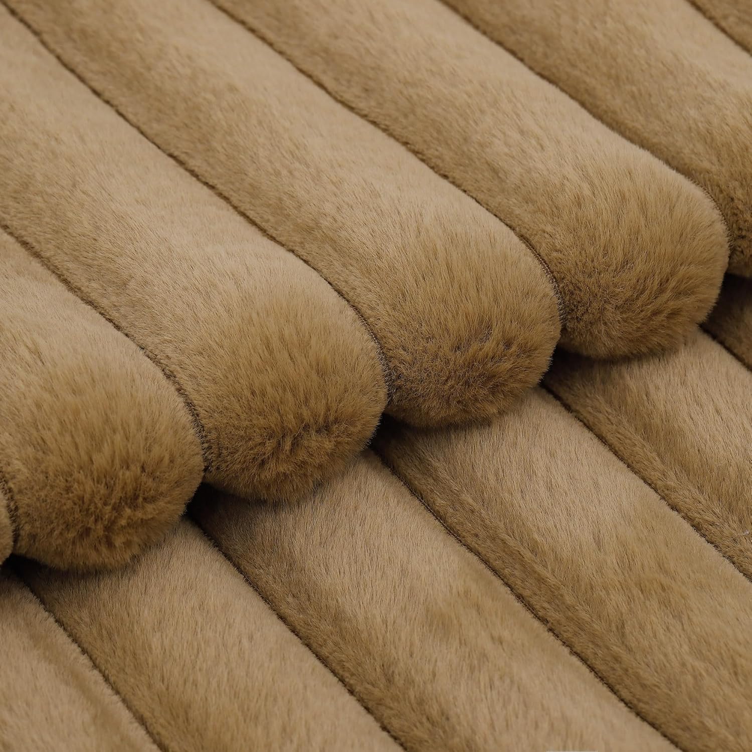 MADIZZ Set of 2 Faux Wool Plush Decorative Throw Pillow Covers 12x20 Inch Camel Fluffy Striped Soft Decorative Cushion Cover for Sofa Bedroom Pillow Shell