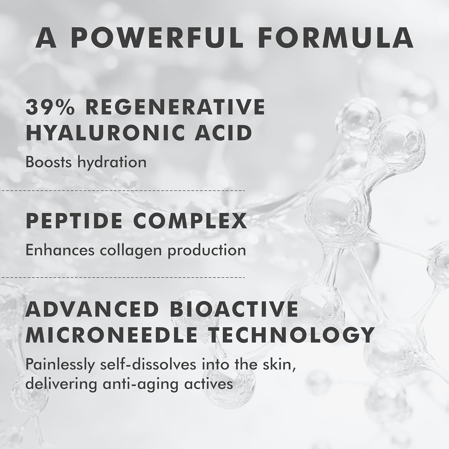 - Pioneering: Press-on patches featuring advanced bioactive dissolving cosmetic that melt down into skin’s surface layers to help hydrate, firm and smooth the appearance of fine lines around the delicate eye area