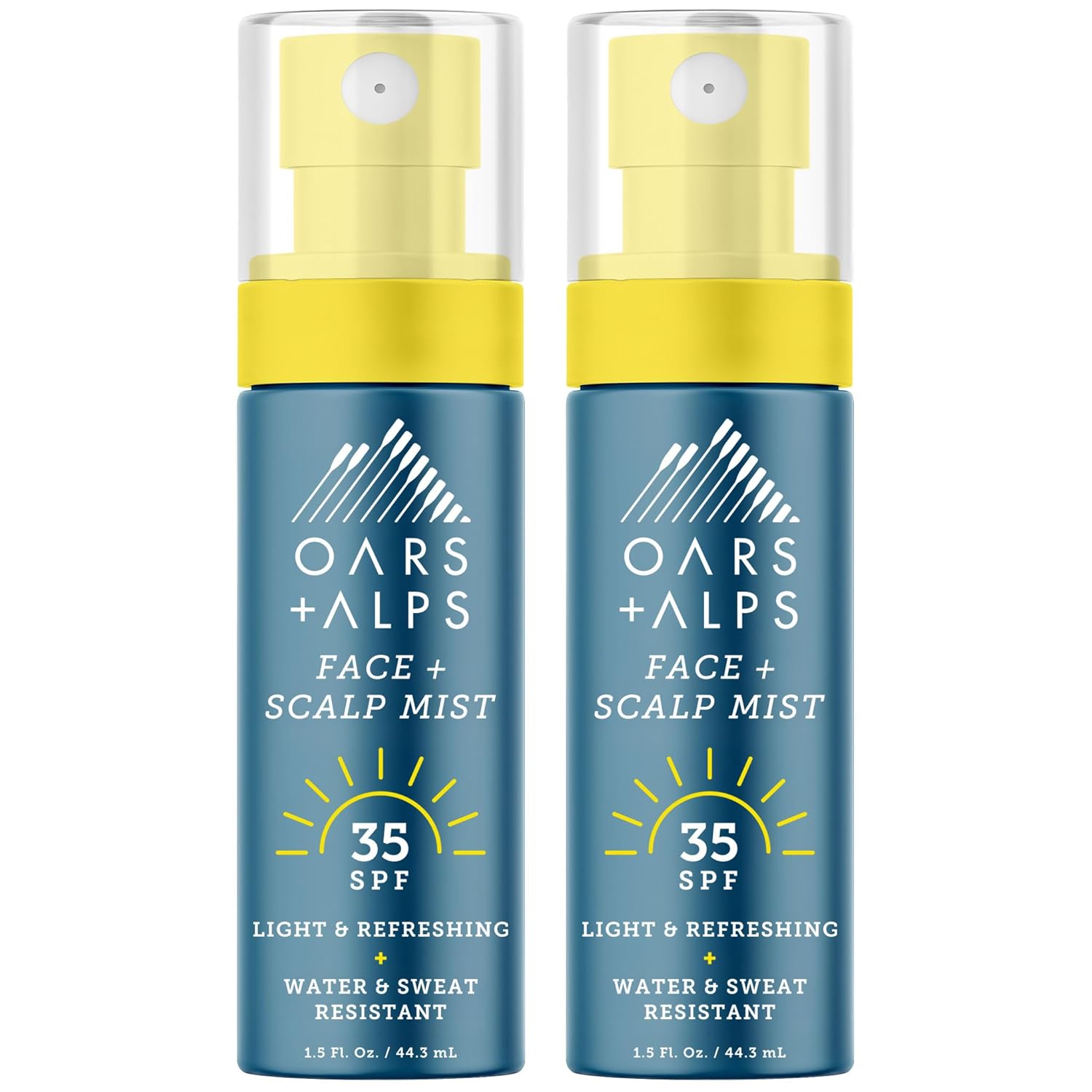 Oars + Alps Face & Scalp Sunscreen Spray Mist, SPF 35 Facial & Hair Sunscreen, Protects from Blue Light, Incfused with Aloe Vera + Cucumber, Water & Sweat Resistant, Summer Splash Scent, 2pk