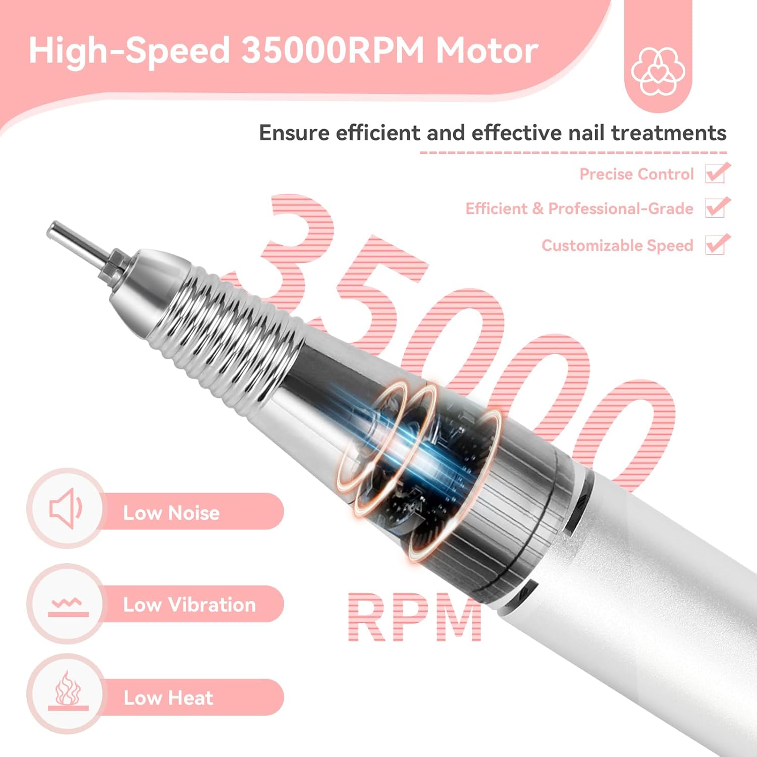 - High Quality & Low Noise: Saviland electric nail drill is made of high-quality materials, and the ventilation hole design ensures excellent heat dissipation performance and reduces the risk of overheating. Saviland electric nail drill has an improved internal motor to keep noise and vibration low during the manicure process.
