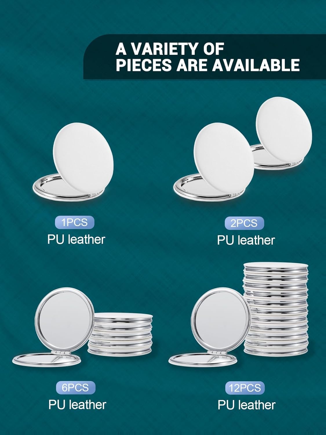 - COMPACT MIRROR: 2.8 inches diameter round small portable mirror is excellent size for purse and women's pockets. Metal frame(covered by PU) weight 1.8 OZ; it feels a bit heavy in hand, not like a cheaply made one
